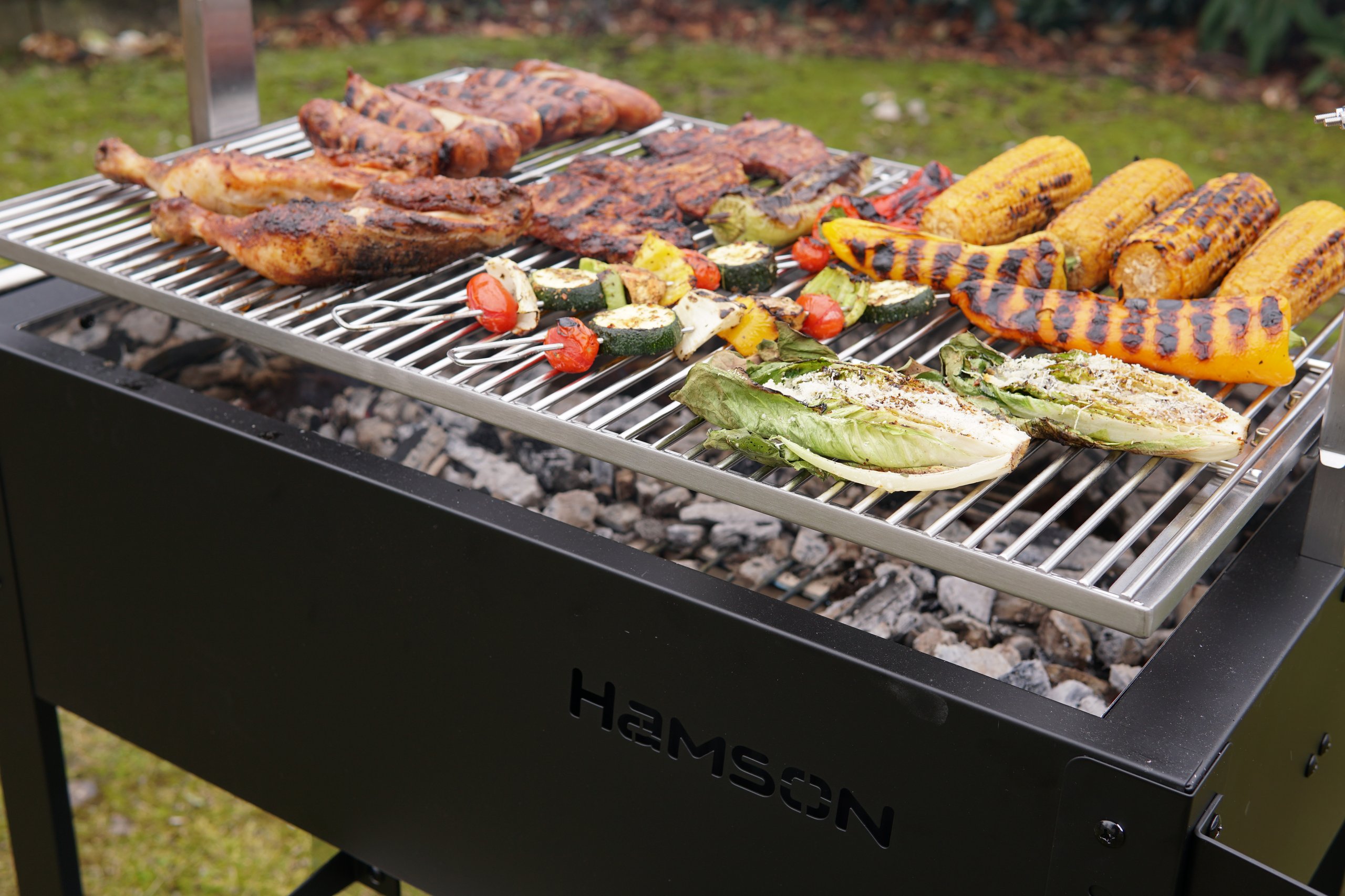 - Double-walled firebox construction ensures excellent heat retention and even cooking