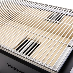 - Height-adjustable grill system allows precise temperature control by raising or lowering the grate