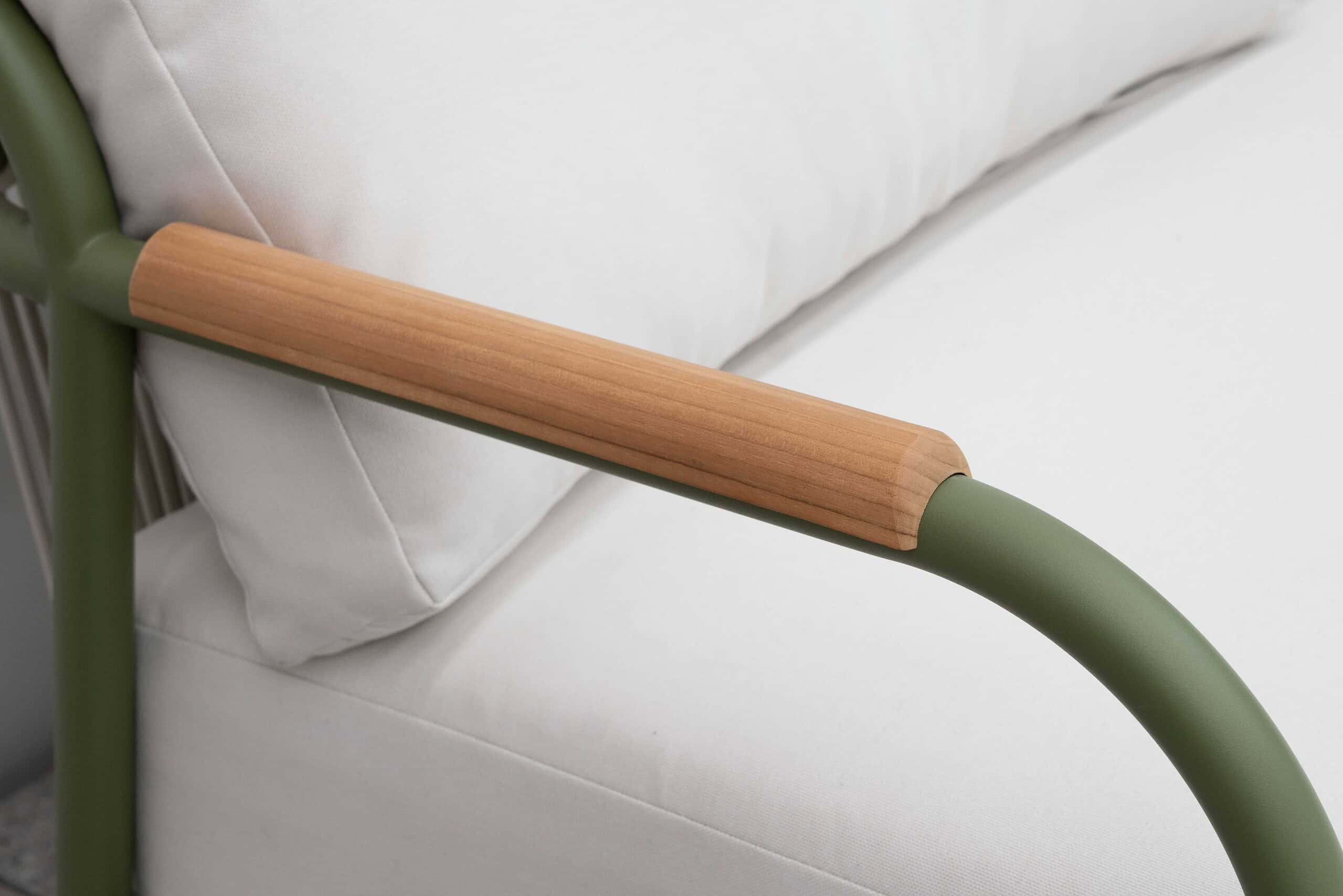 Designed with comfort in mind, the low and generously sized seats provide a luxurious lounging experience, making it easy for you and your guests to relax in style. Adding a touch of warmth and sophistication, the collection features teak wood accents that beautifully integrate with the natural surroundings of your garden.