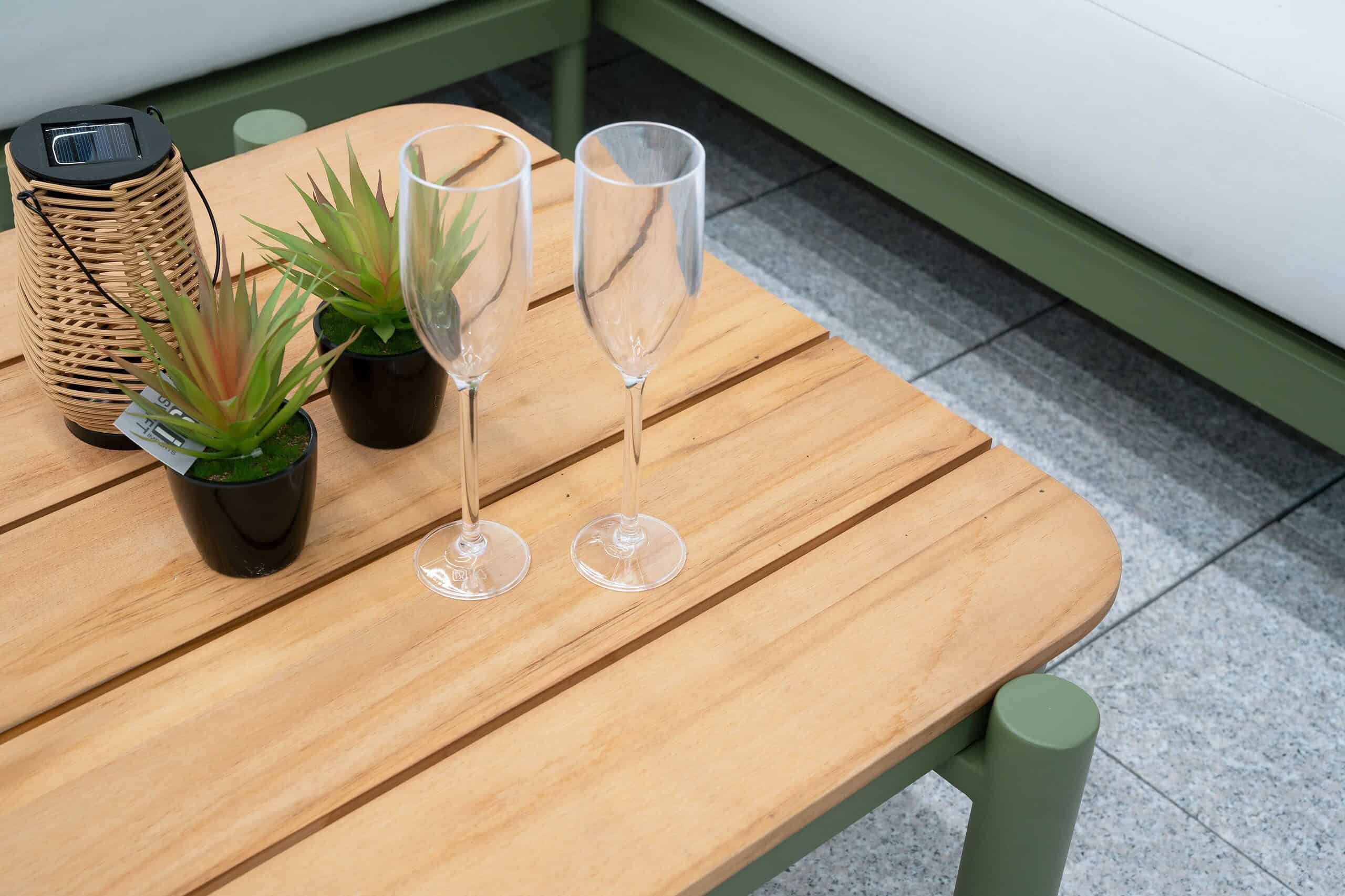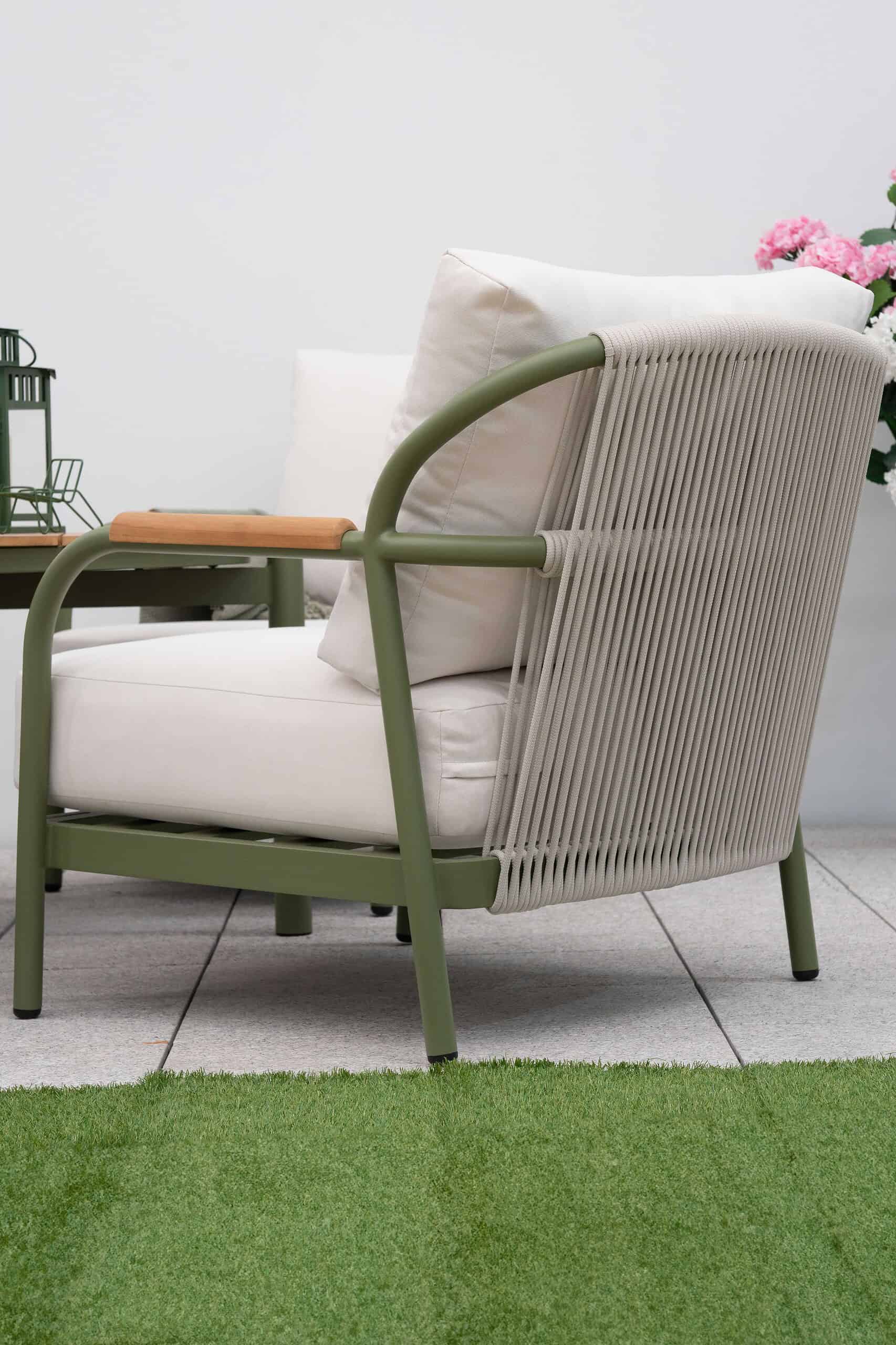 Designed with comfort in mind, the low and generously sized seats provide a luxurious lounging experience, making it easy for you and your guests to relax in style. Adding a touch of warmth and sophistication, the collection features teak wood accents that beautifully integrate with the natural surroundings of your garden.