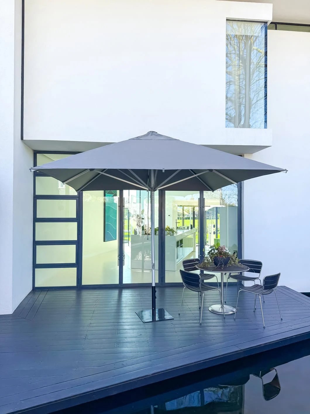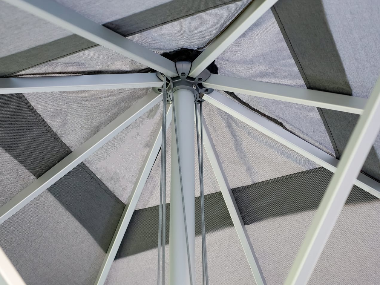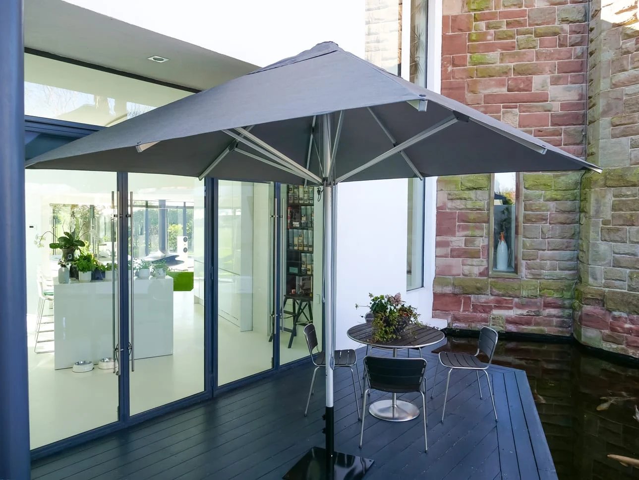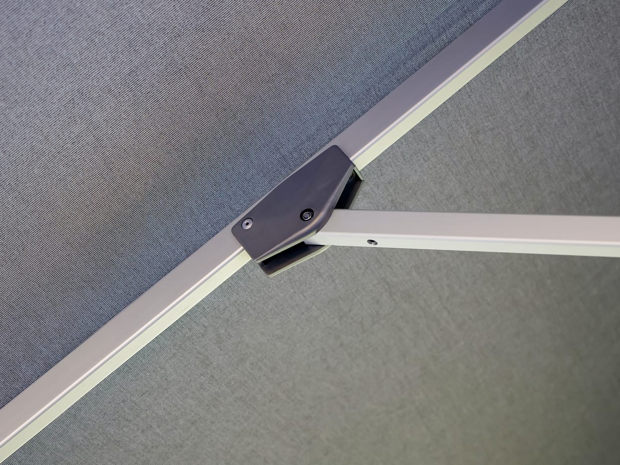 The canopy is crafted from a premium olefin canvas fabric that is both water-repellent and UV-resistant, certified to UV Standard 801 for superior sun protection. Available in several sophisticated contemporary colours — including Black, Natural, Slate, Smoked Tweed, and White — it’s easy to match your outdoor aesthetic or brand identity.