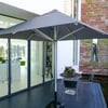 Compatible accessories including a parasol carry bag, outdoor heater, and rechargeable LED lighting can be added to complete your outdoor setup.