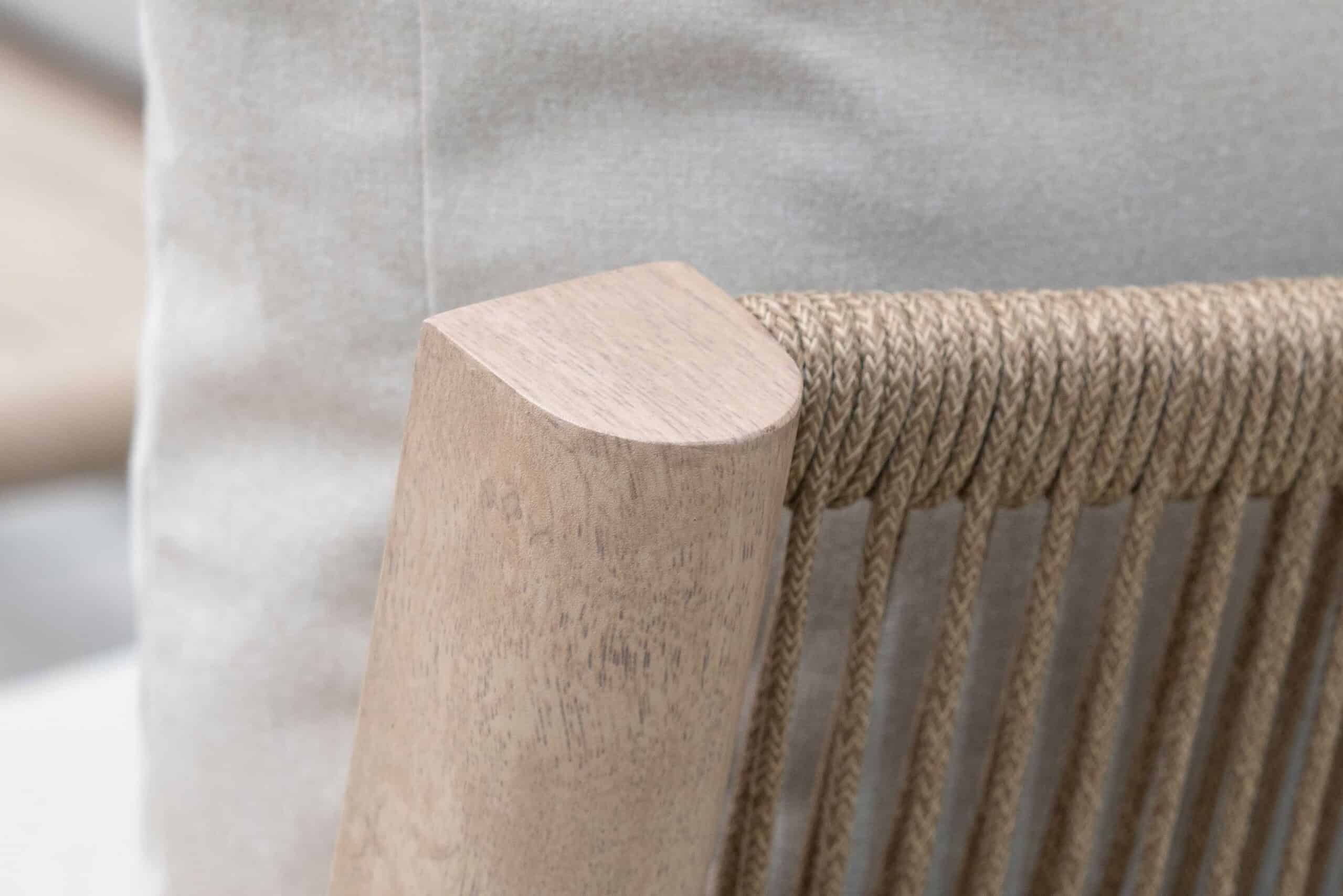 The Eleanor’s refined aesthetic is enhanced by its vertical rope detailing on the back of the chairs, adding texture and sophistication to the set. This feature not only elevates the design but also ensures comfort and support, making it perfect for relaxing or entertaining outdoors.