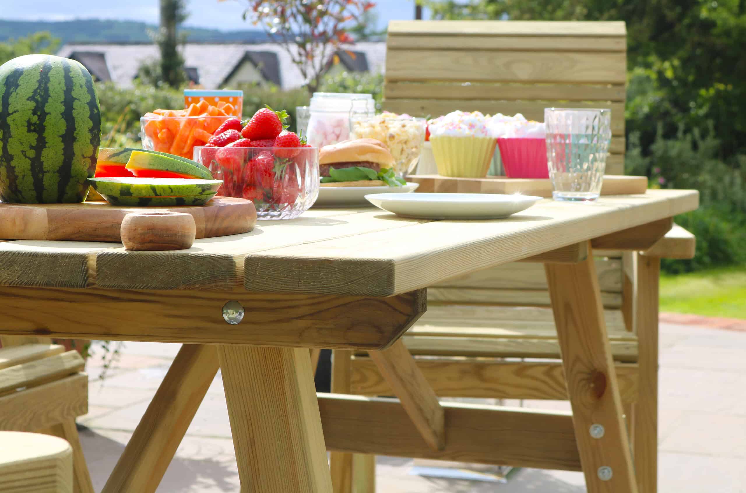 All details have been considered, particularly the wide and long armrests, which provide maximum arm support and space to rest a glass, giving the set a modern and contemporary look. As part of Zest’s new Easy Build range, this dining set is designed with fewer components for simple assembly using bolts. The range offers a wide choice of furniture combinations to suit any size of outdoor space, including two or three-seater benches, round or rectangular tables, chairs, and a companion seat for two.