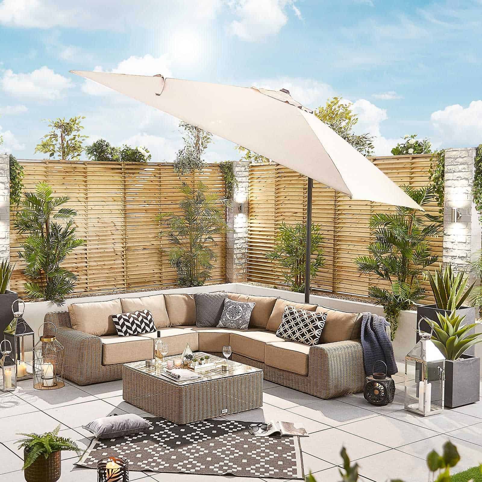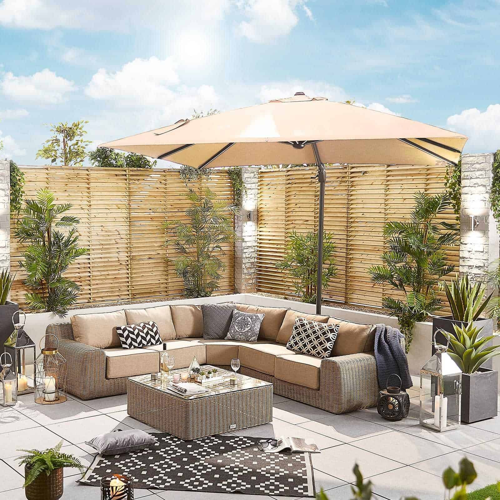 The 250g polyester parasol canopy offers plenty of sun protection as it has a UV rating of 50+. Additionally, it has a fade resistance level of 6 which means the colour is extremely protected against fading or discolouration. Plus, it is specially treated with a PA waterproof coating, meaning you can leave it outside in all weathers without concern for deterioration or weather damage.