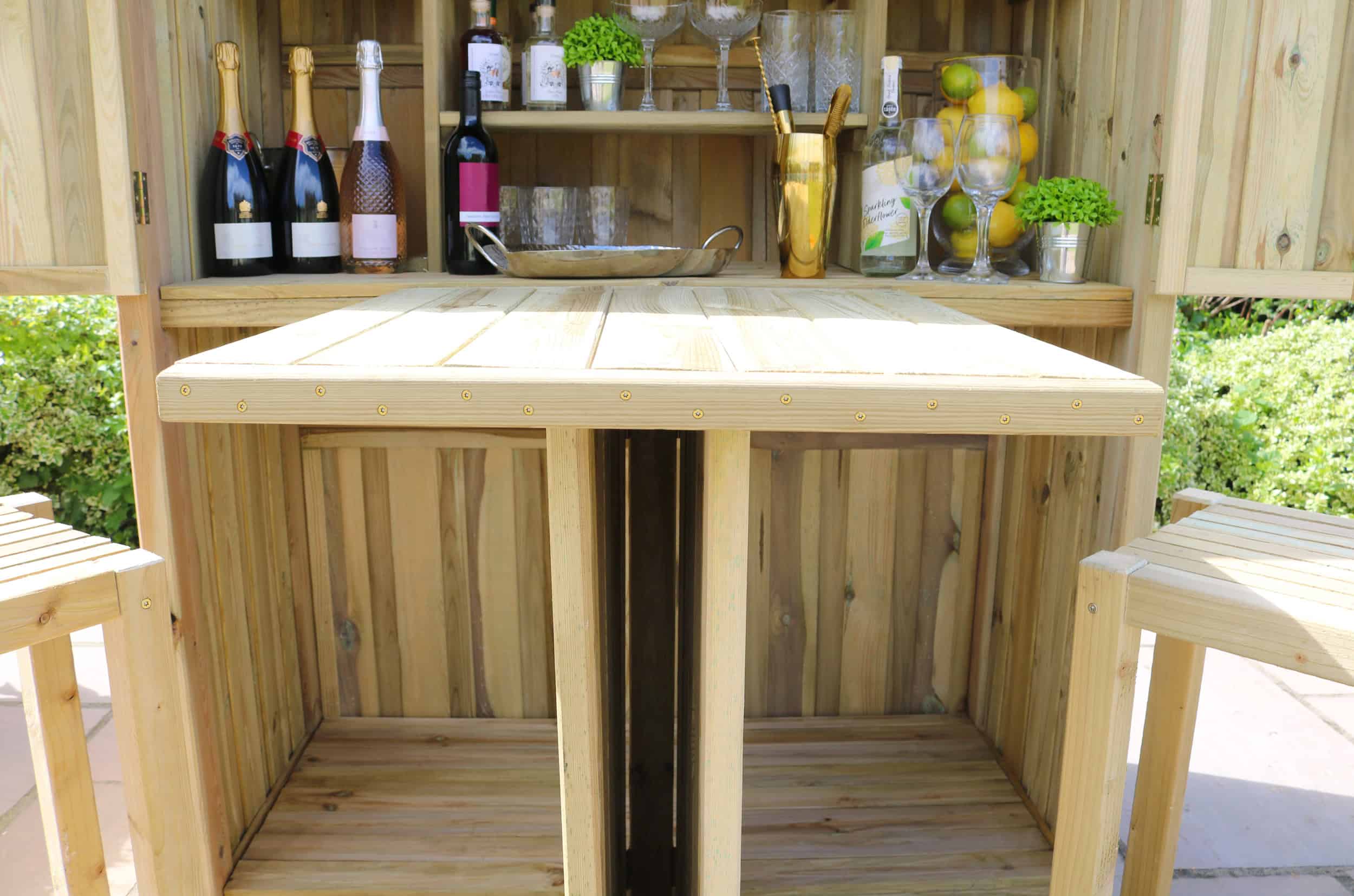 When the party is over, the bar counter and doors neatly fold back into place and are secured with fasteners, returning the unit to its compact shape. Made from sustainable, slow-grown softwood from responsibly managed forests, the Zest Garden Bar comes with a 10-year guarantee against rot, ensuring a durable and long-lasting addition to your outdoor area.
