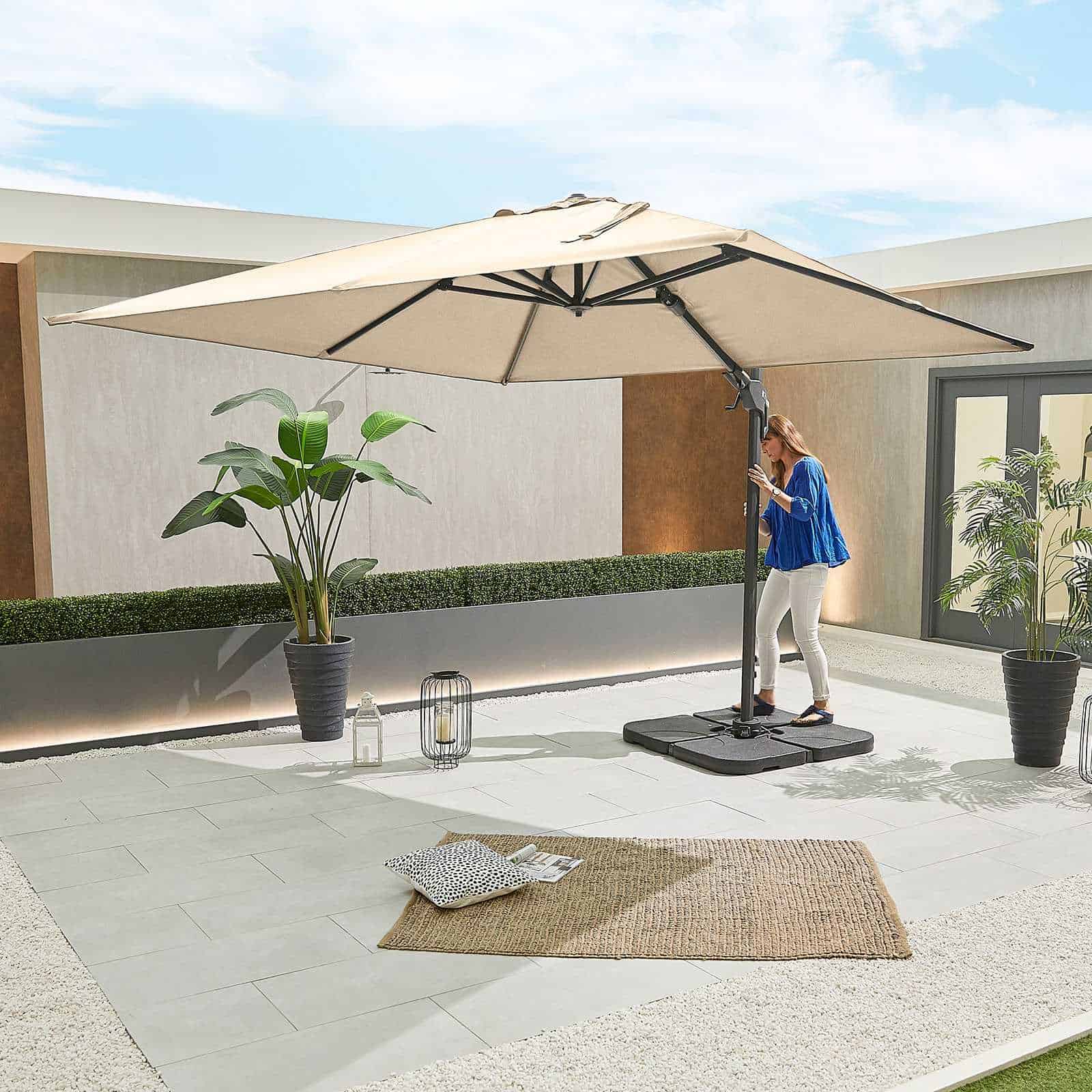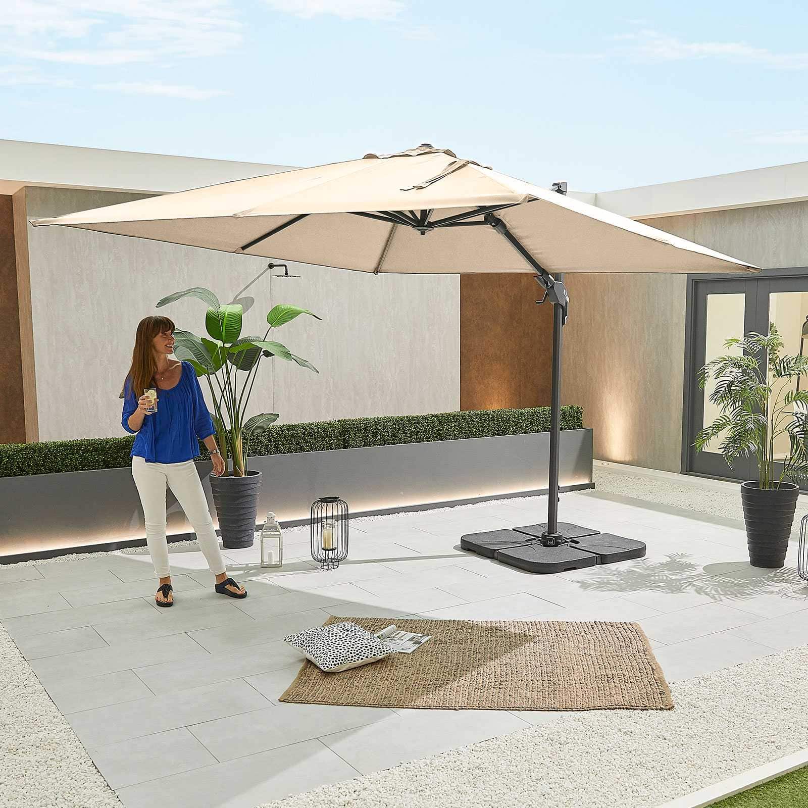 The Nova – Genesis 3m Square Cantilever Aluminium Garden Parasol is a luxury parasol perfect for use in conjunction with sofa and casual dining sets. This parasol is erected via a crank handle and quick release pin to secure into place. This also allows for multiple tilting angles and can also be rotated 360° so you can protect yourself and your family from the sun, no matter what position it is in the sky.