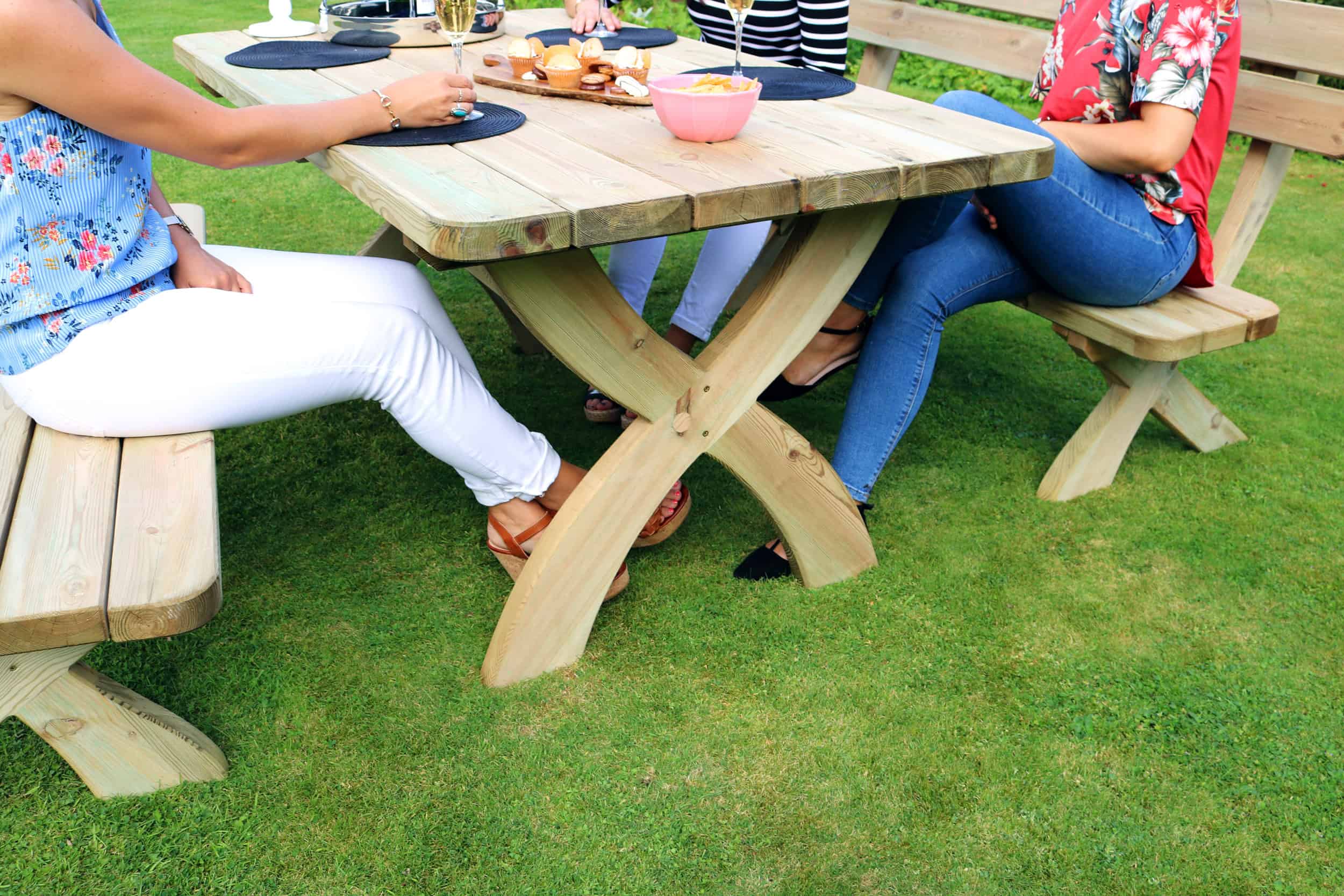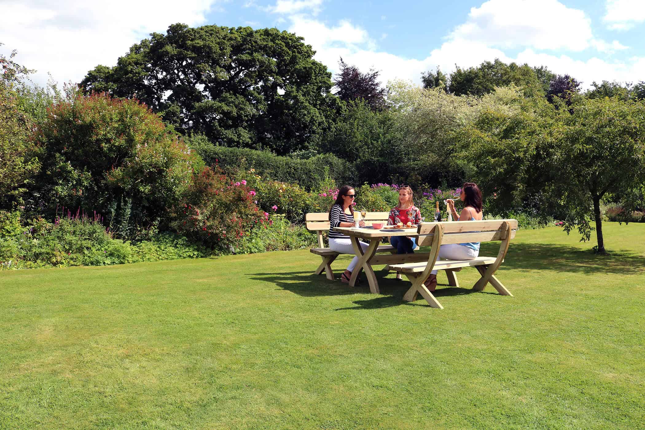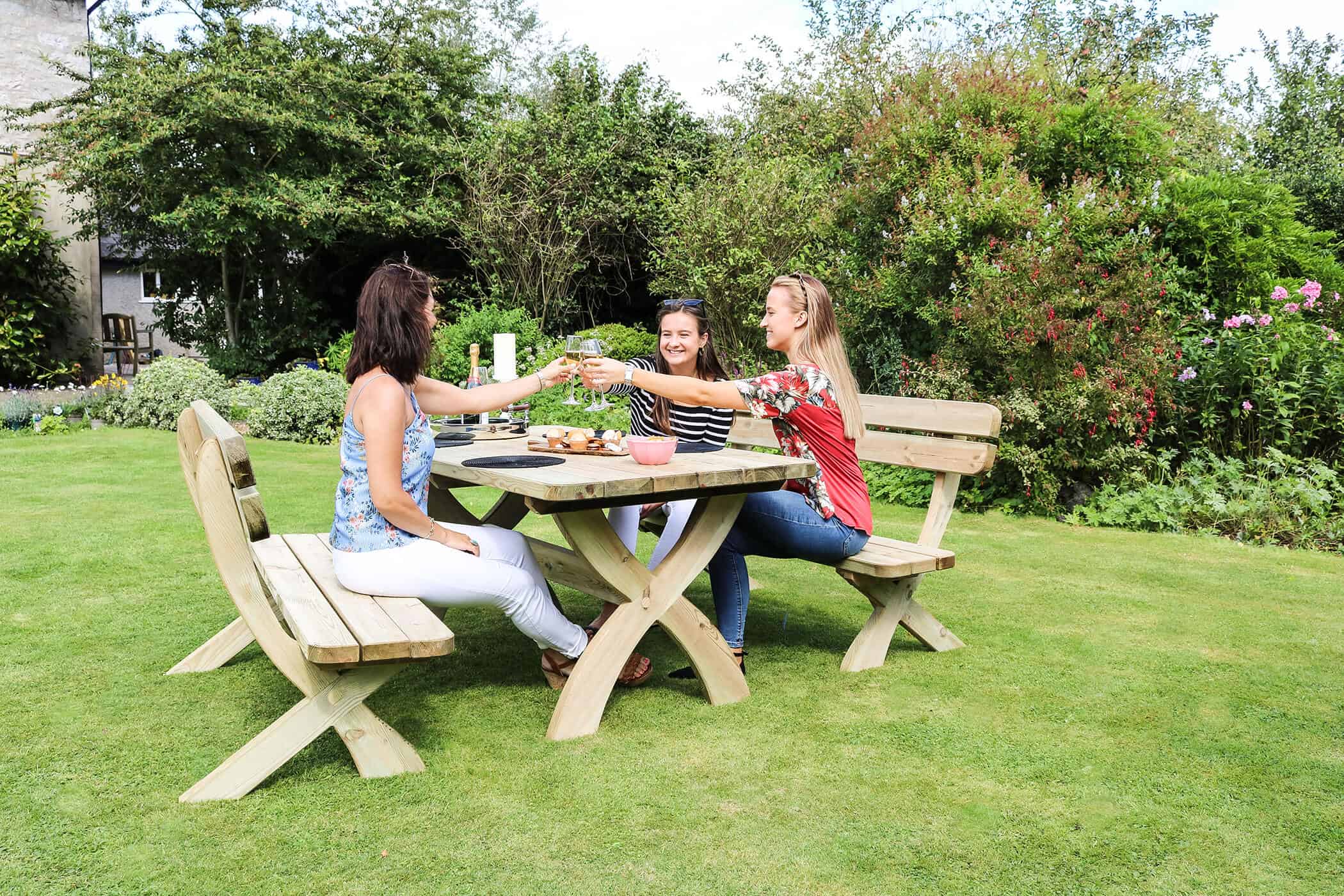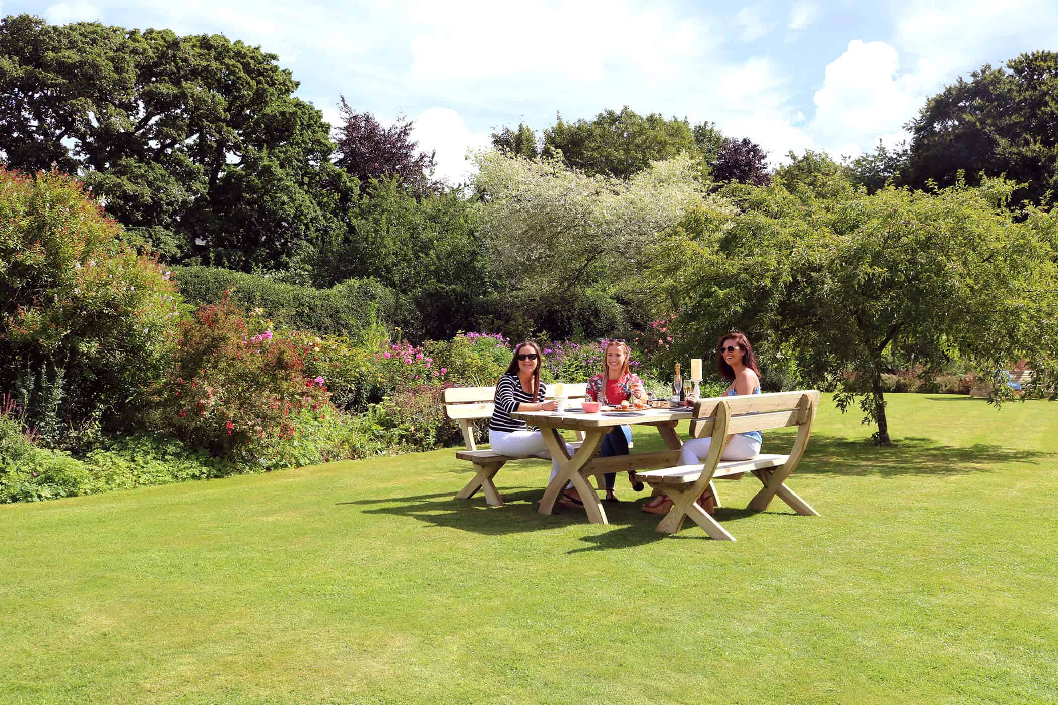 Made from sustainably sourced, slow-grown softwood from responsibly managed forests, the Harriet set is built to be both beautiful and durable. The high-quality wood is pressure-treated and comes with a 10-year guarantee against rot, ensuring that it will stand the test of time and provide a lasting centerpiece for your outdoor gatherings. The set’s sturdy construction is matched by its elegant design, making it a perfect choice for those who value both style and practicality in their outdoor furniture.