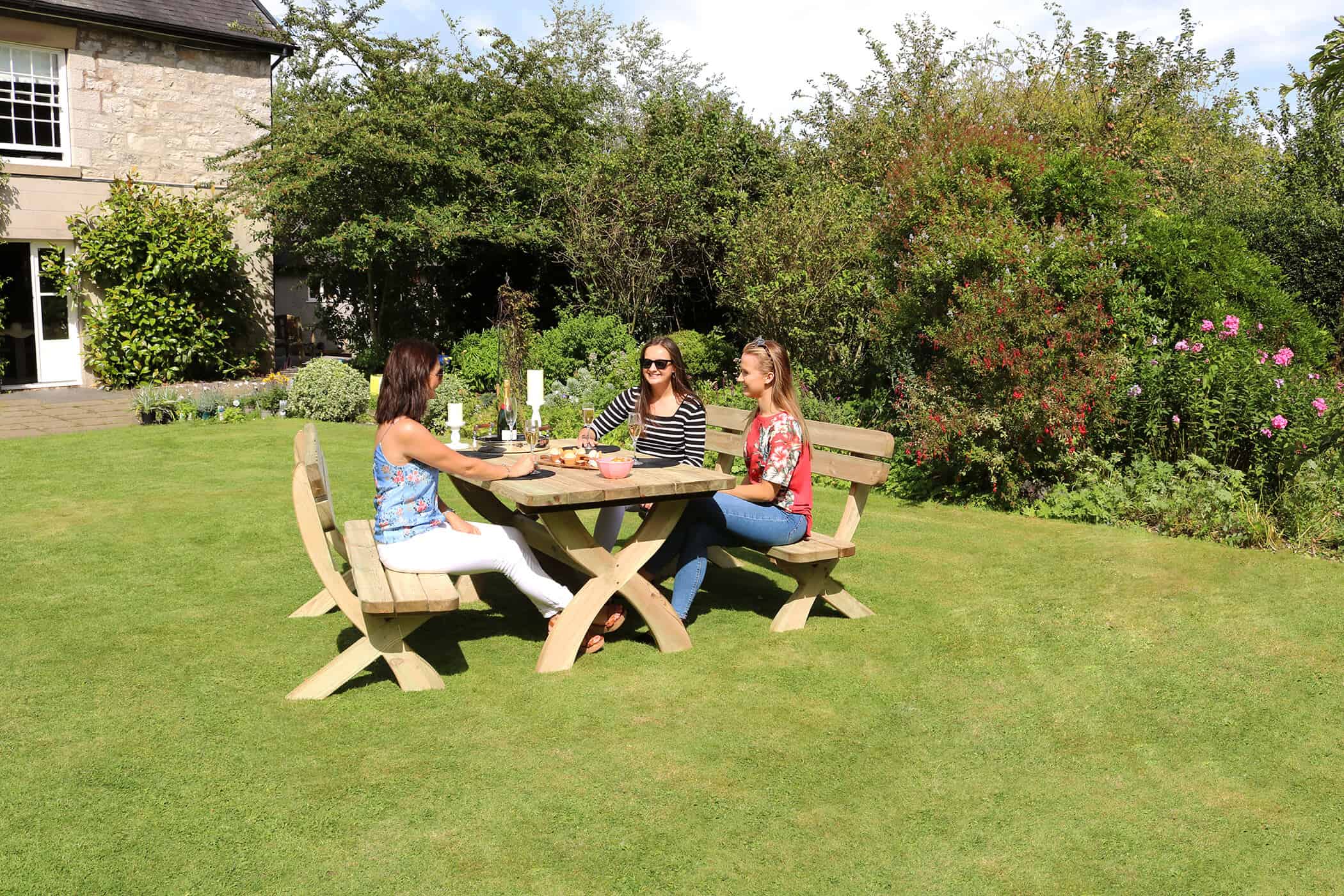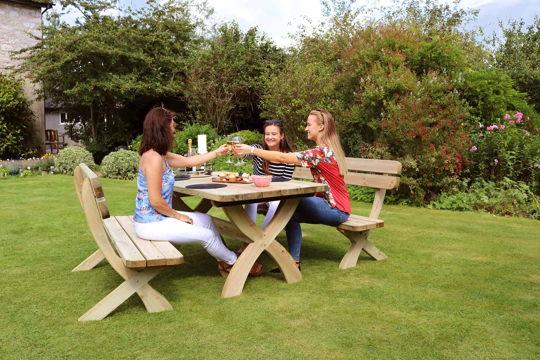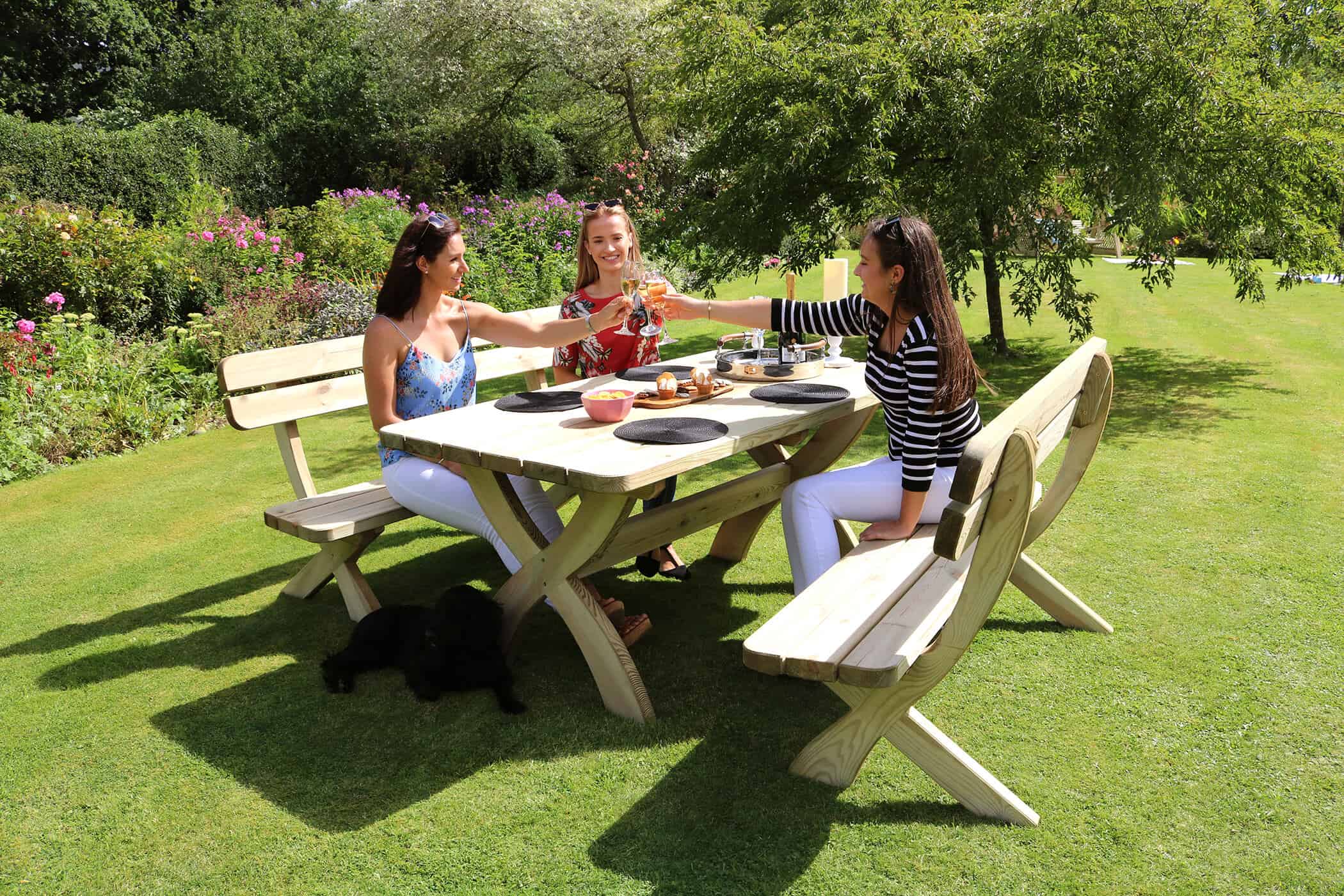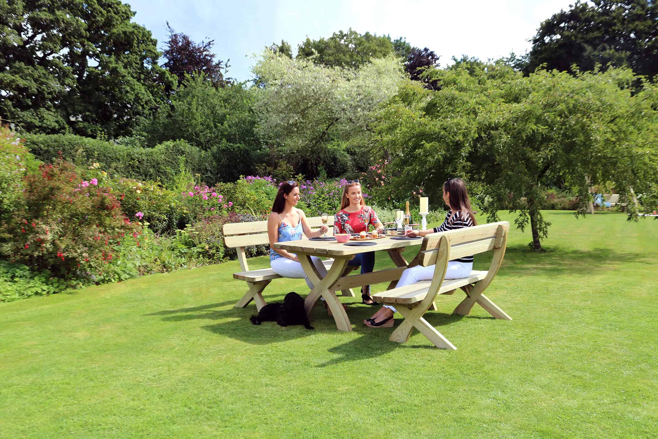 Made from sustainably sourced, slow-grown softwood from responsibly managed forests, the Harriet set is built to be both beautiful and durable. The high-quality wood is pressure-treated and comes with a 10-year guarantee against rot, ensuring that it will stand the test of time and provide a lasting centerpiece for your outdoor gatherings. The set’s sturdy construction is matched by its elegant design, making it a perfect choice for those who value both style and practicality in their outdoor furniture.