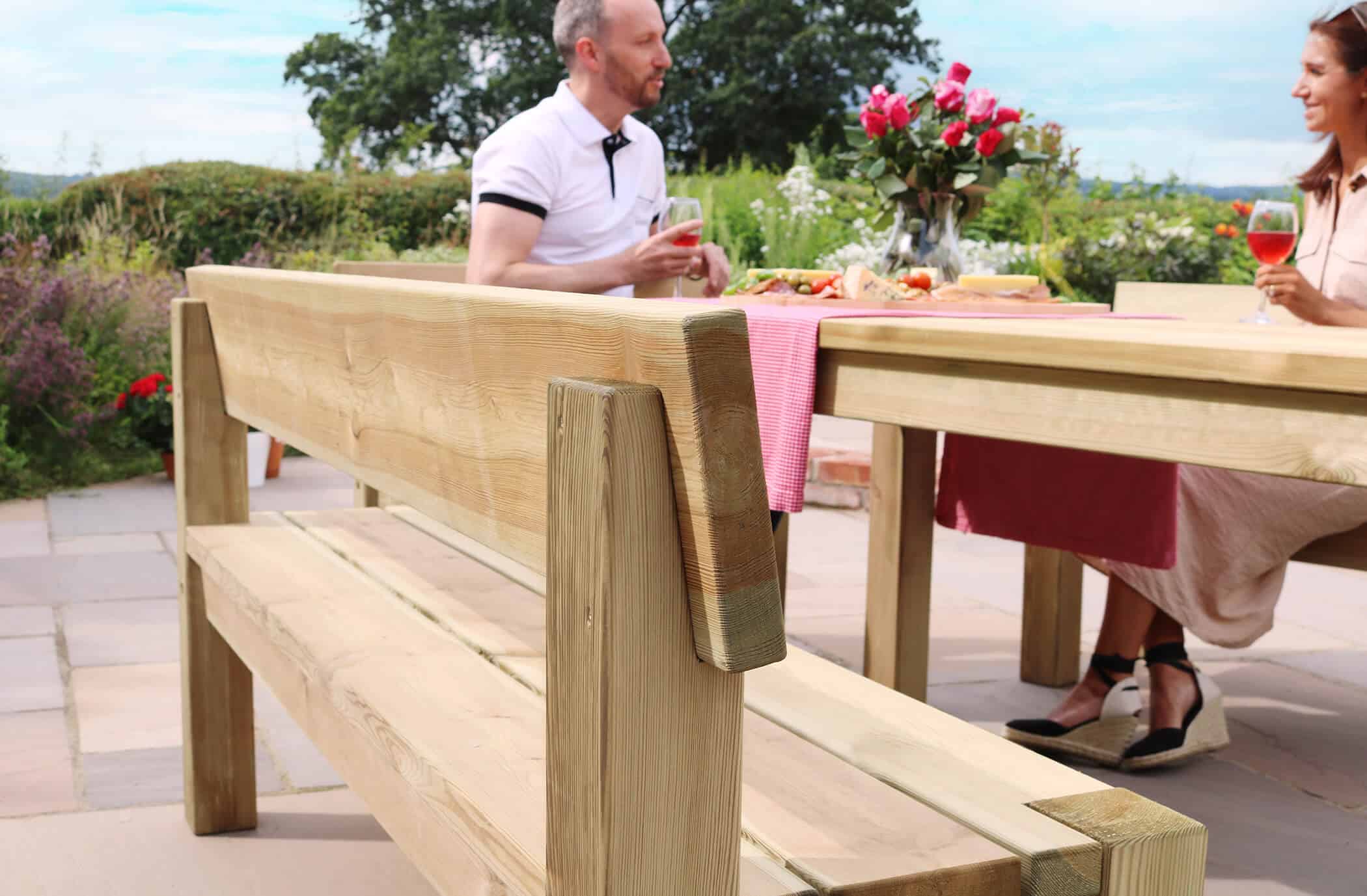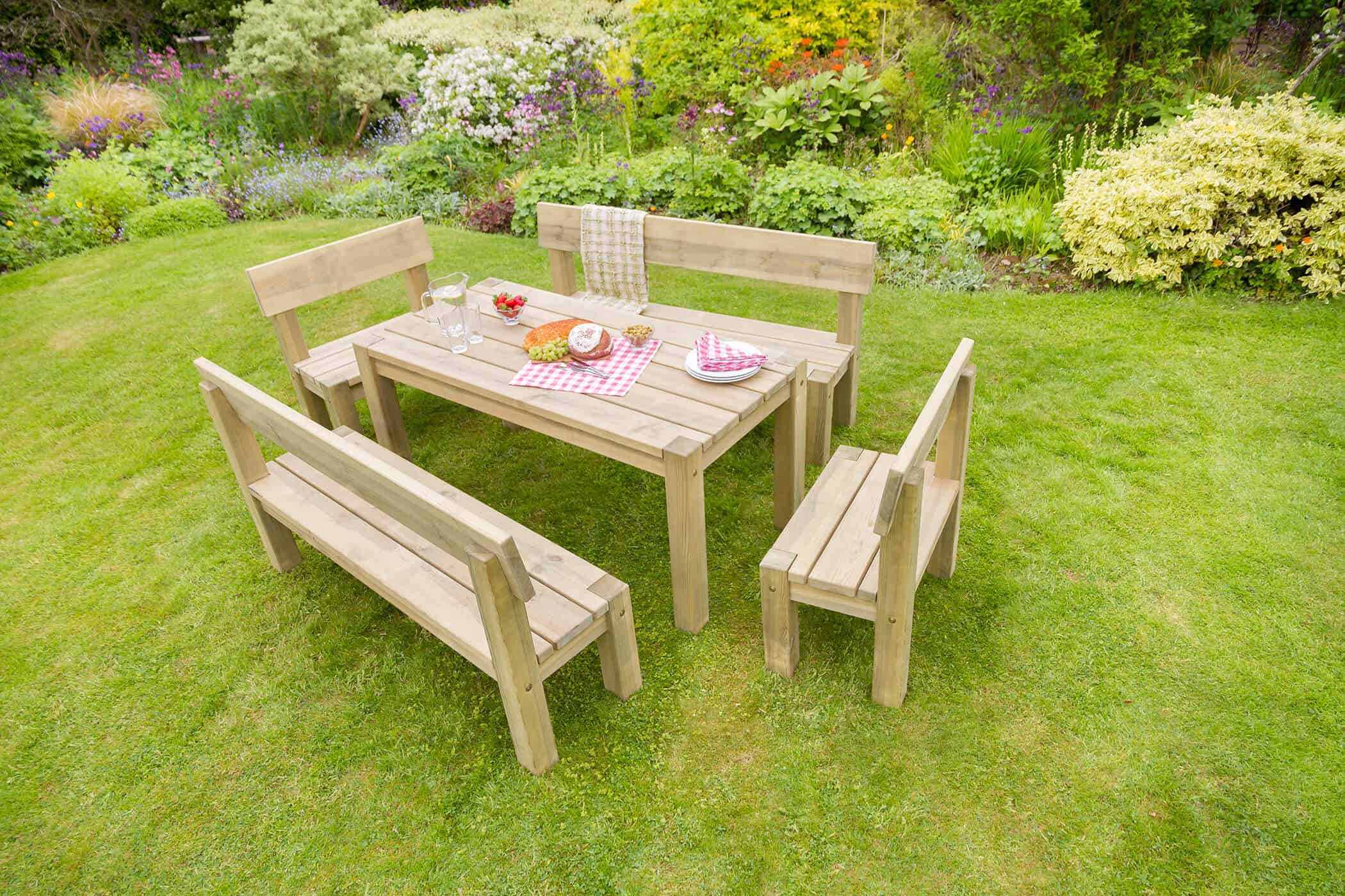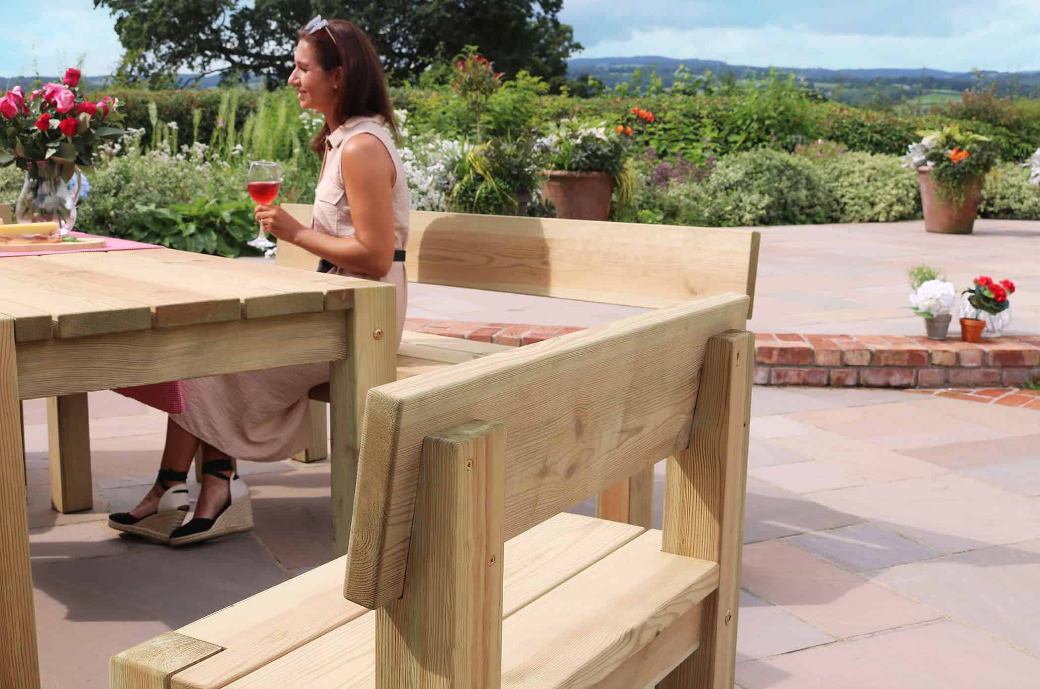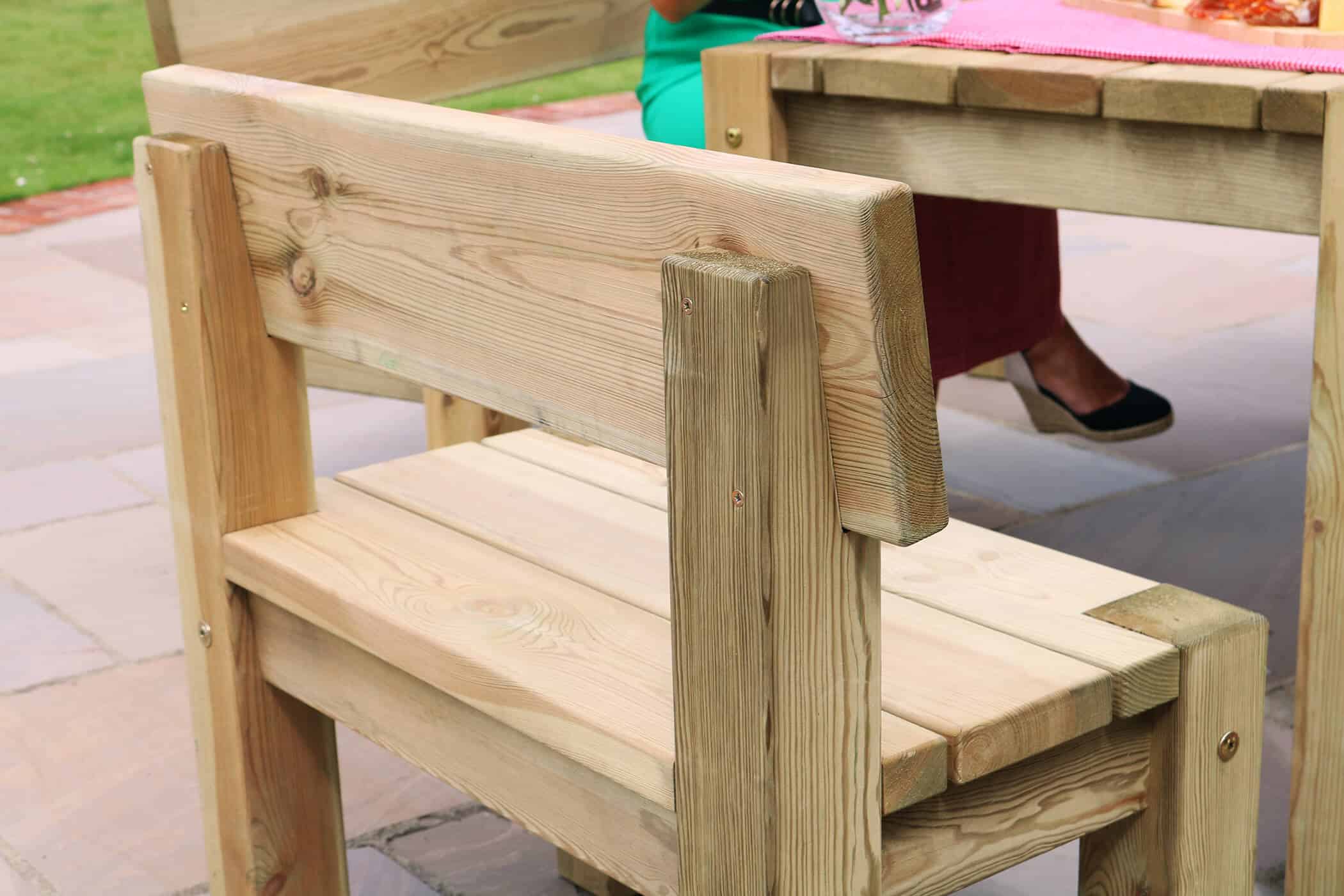 Crafted from sustainably sourced, slow-grown softwood from responsibly managed forests, this furniture set is both durable and eco-friendly. The high-quality wood is pressure-treated and comes with a 10-year guarantee against rot, so you can be confident that this set is built to last and will be a permanent and stylish feature in your garden for years to come.