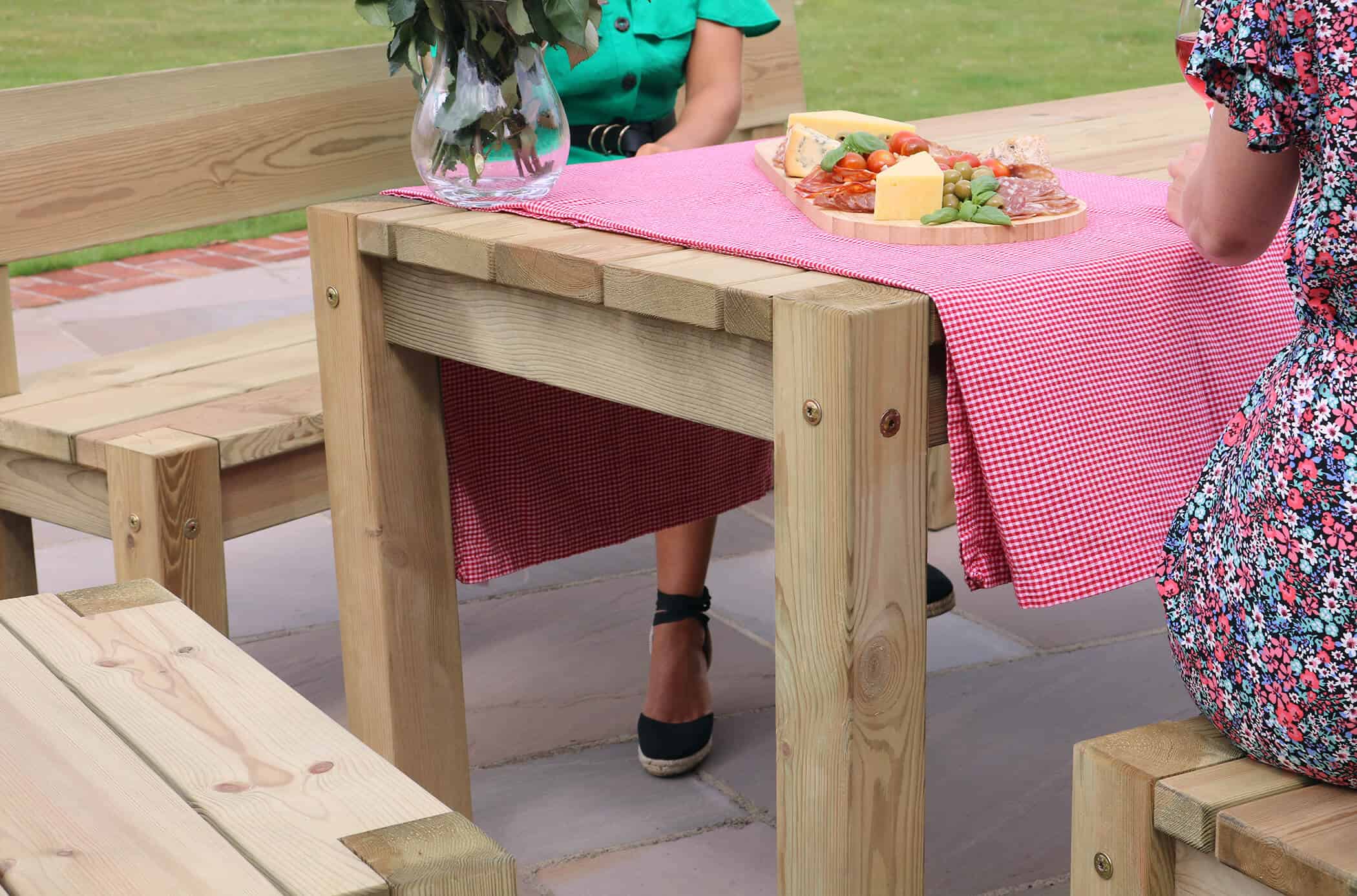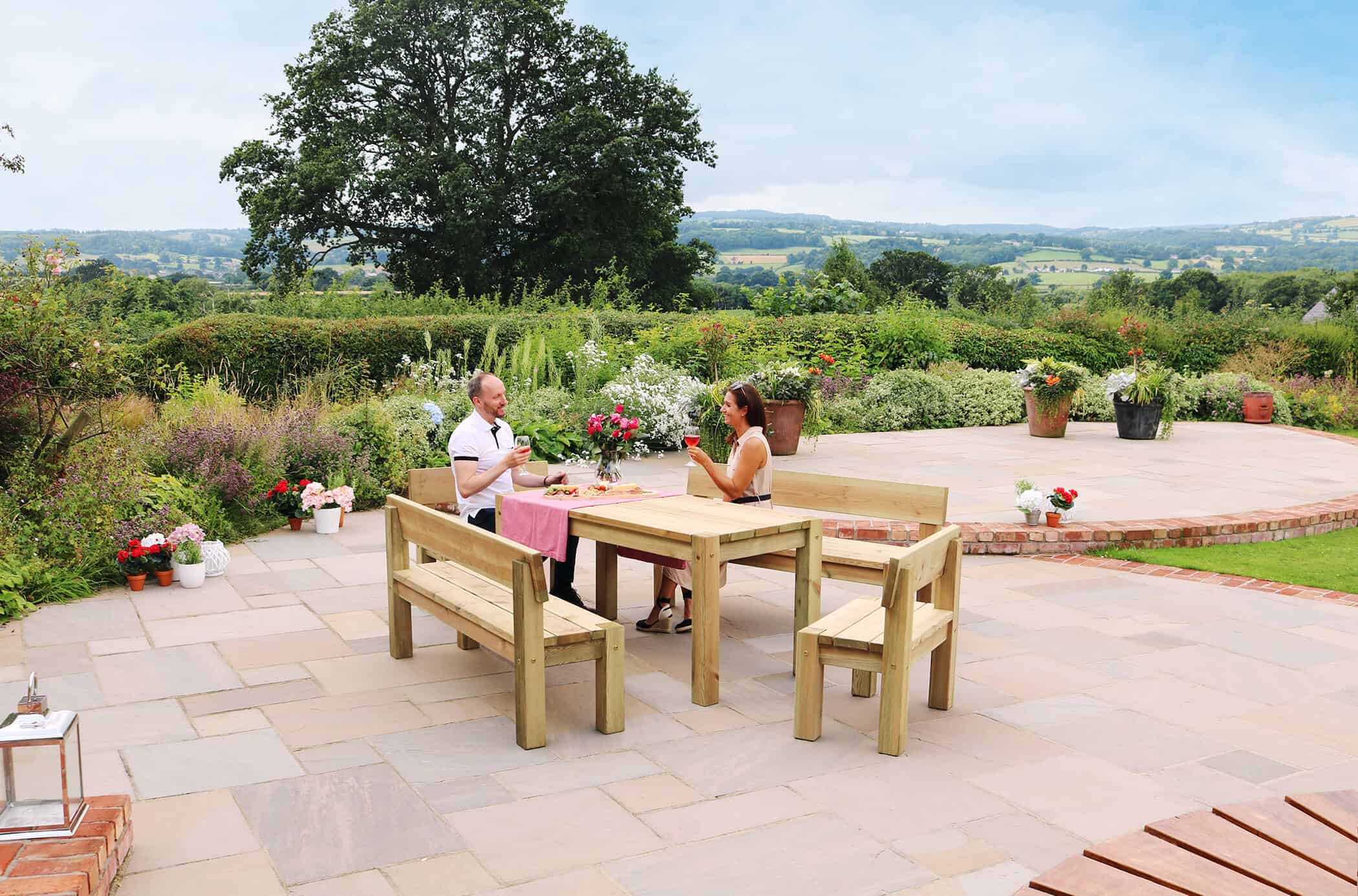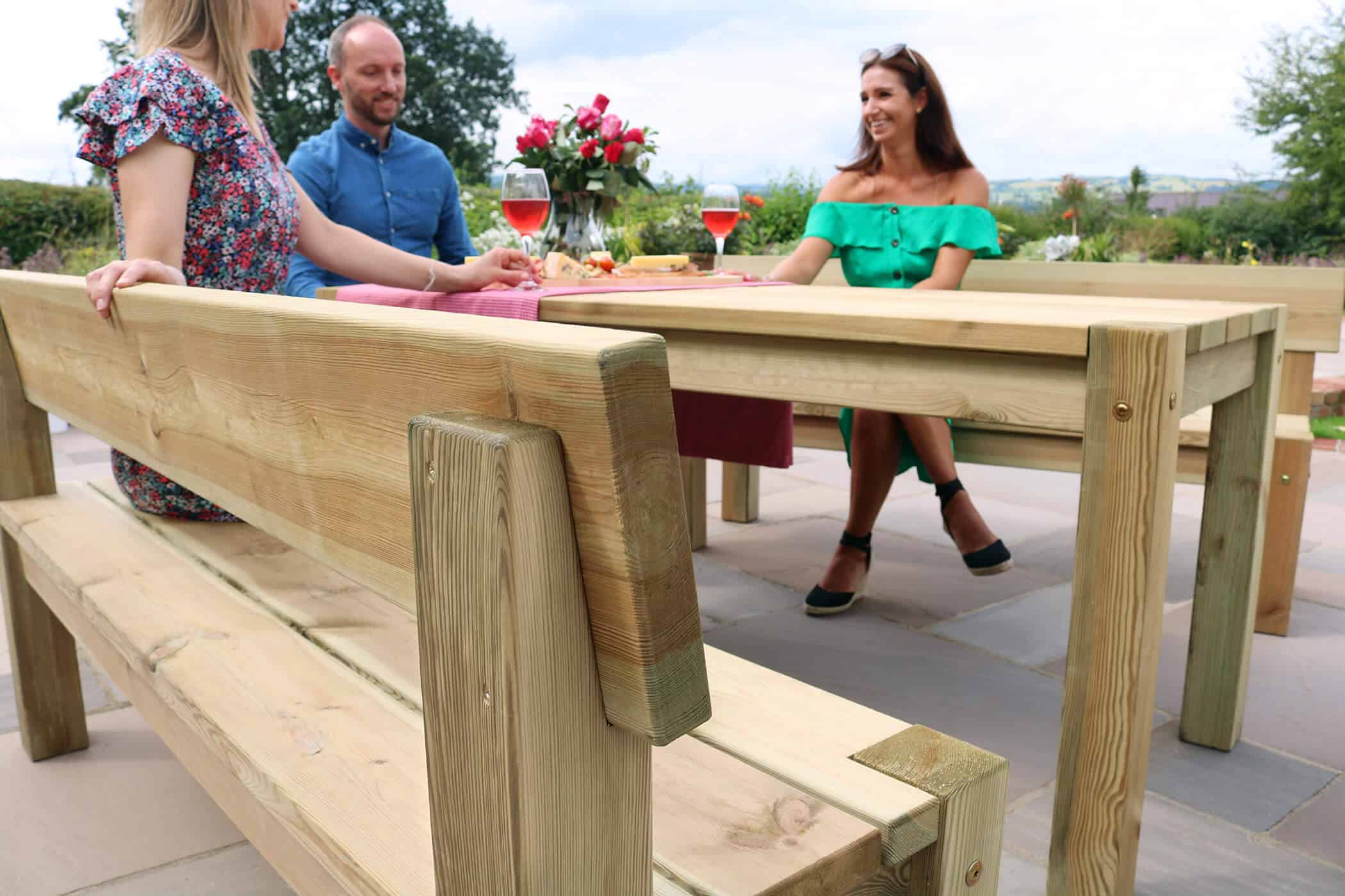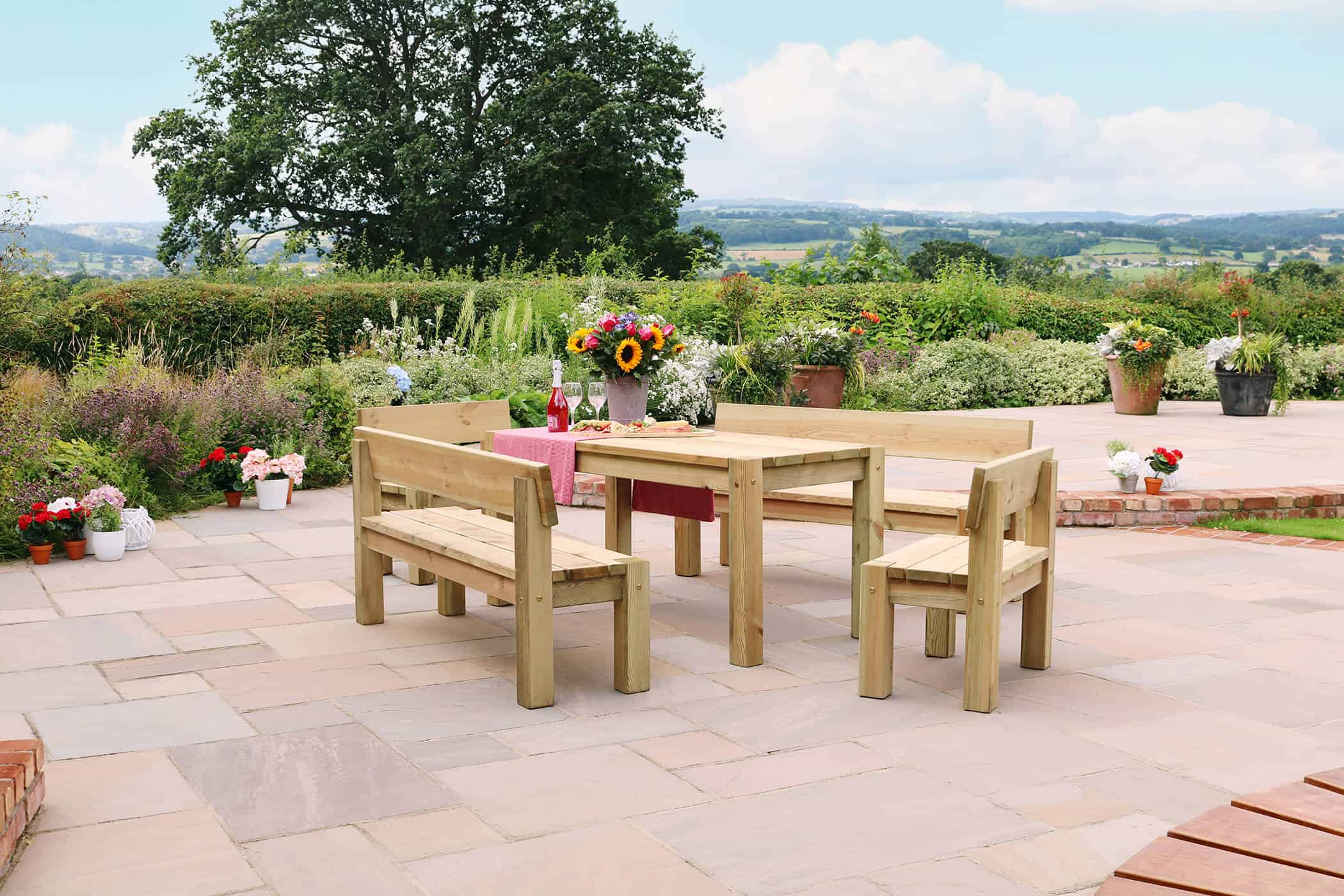 Crafted from sustainably sourced, slow-grown softwood from responsibly managed forests, this furniture set is both durable and eco-friendly. The high-quality wood is pressure-treated and comes with a 10-year guarantee against rot, so you can be confident that this set is built to last and will be a permanent and stylish feature in your garden for years to come.