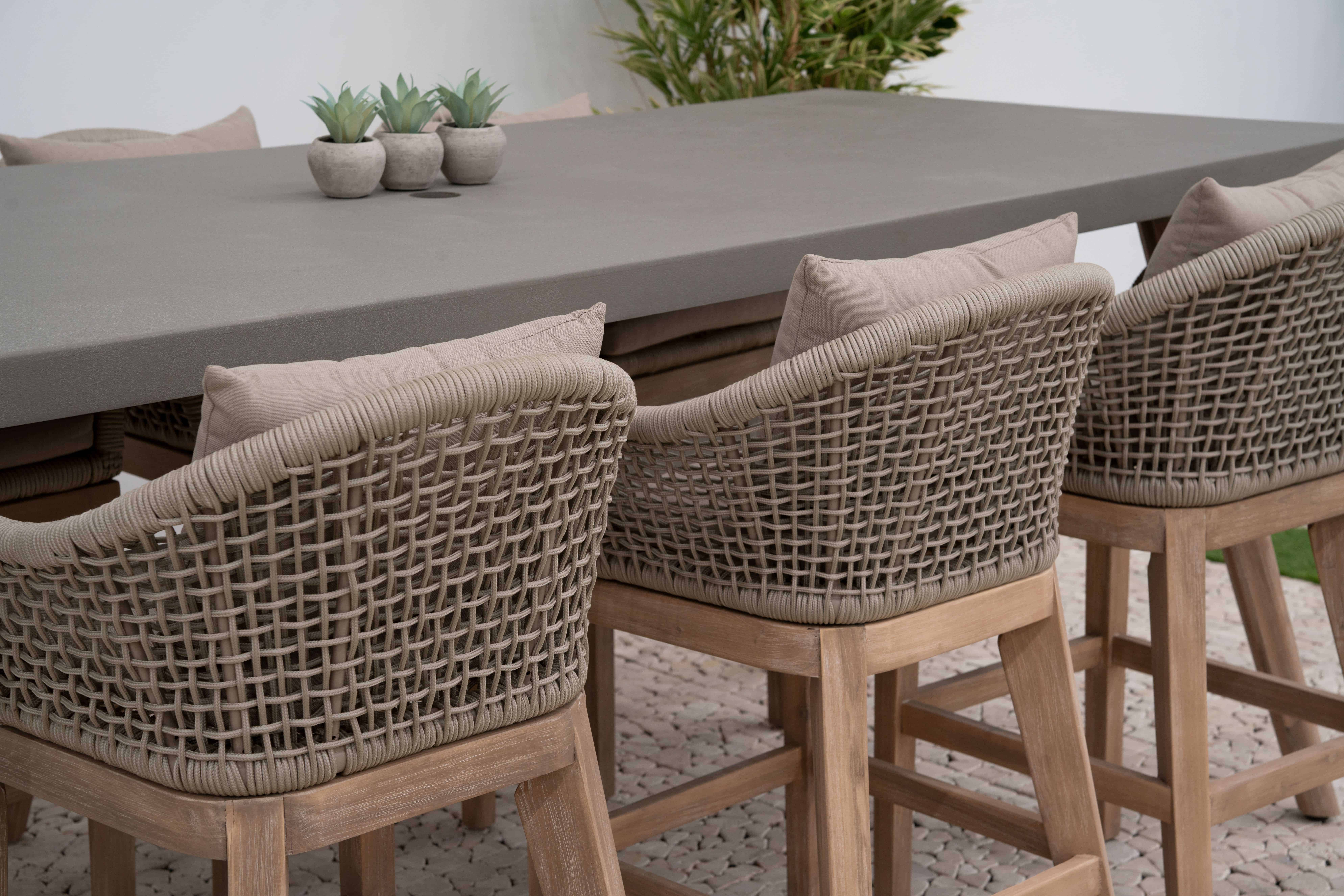 Designed with relaxation in mind, the Summer Collection includes high-specification olefin cushions, offering exceptional comfort for outdoor seating. The generously sized seats ensure a luxurious lounging experience, making it perfect for entertaining or unwinding. The polycrete tabletop adds a modern, low-maintenance touch with a rust-free design, while the incorporation of acacia wood provides a warm, natural aesthetic. Together, these materials create a harmonious blend of timeless beauty.