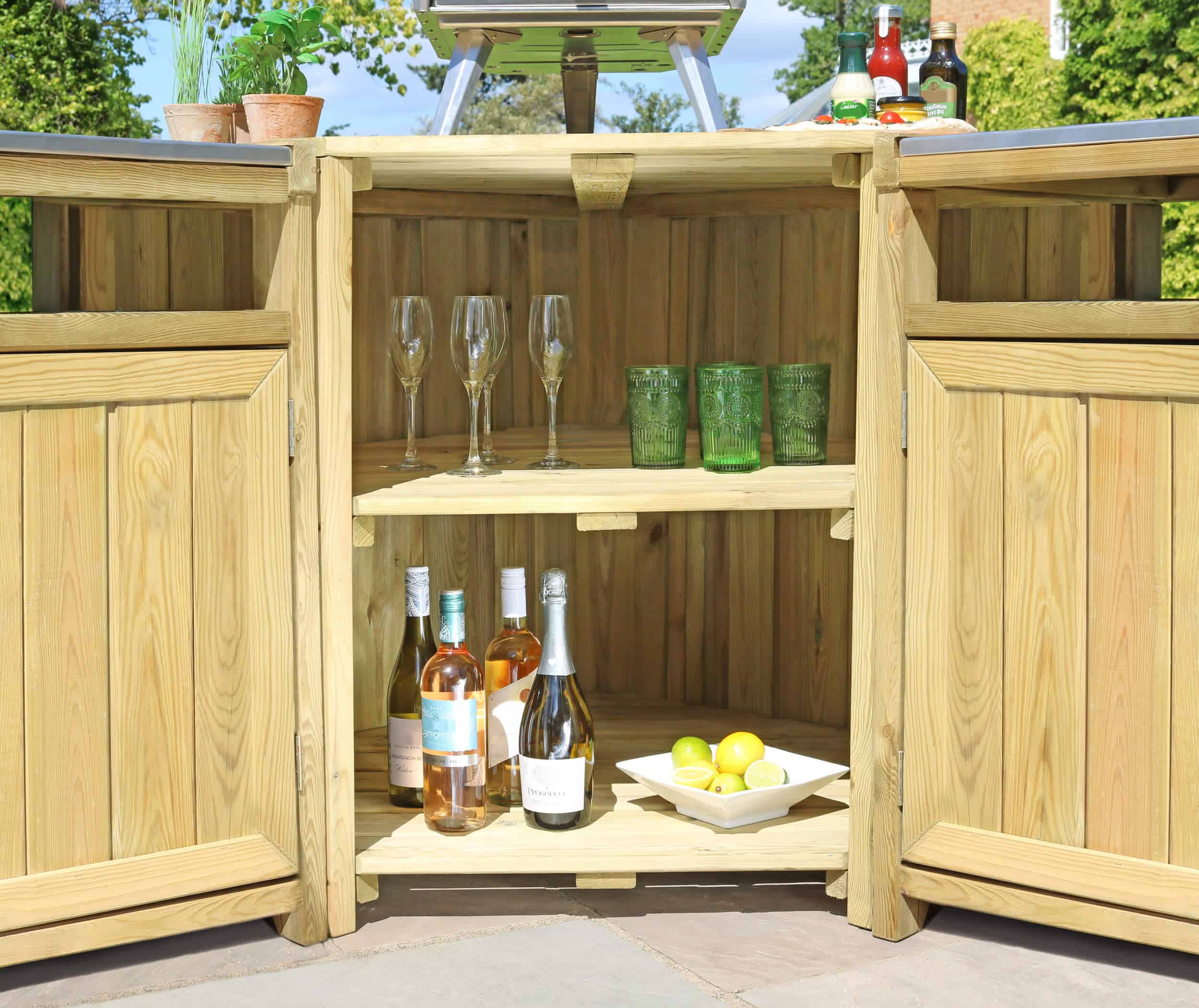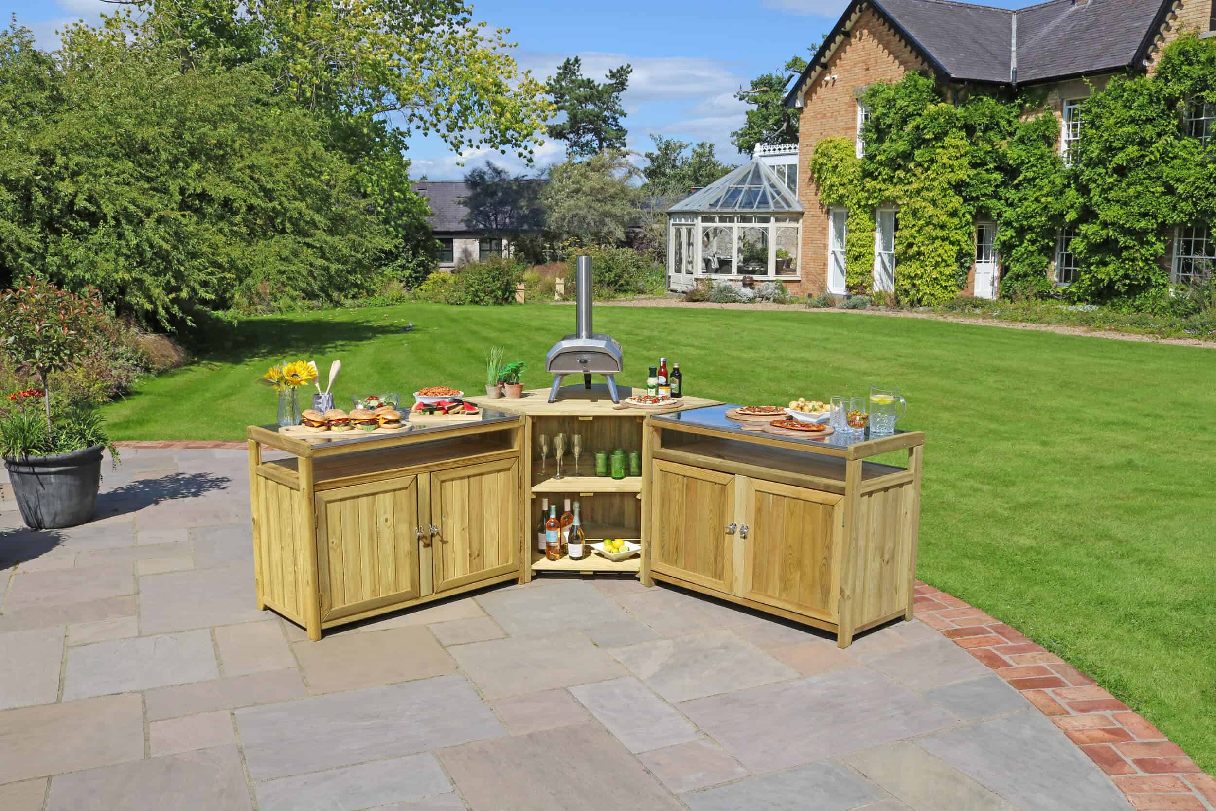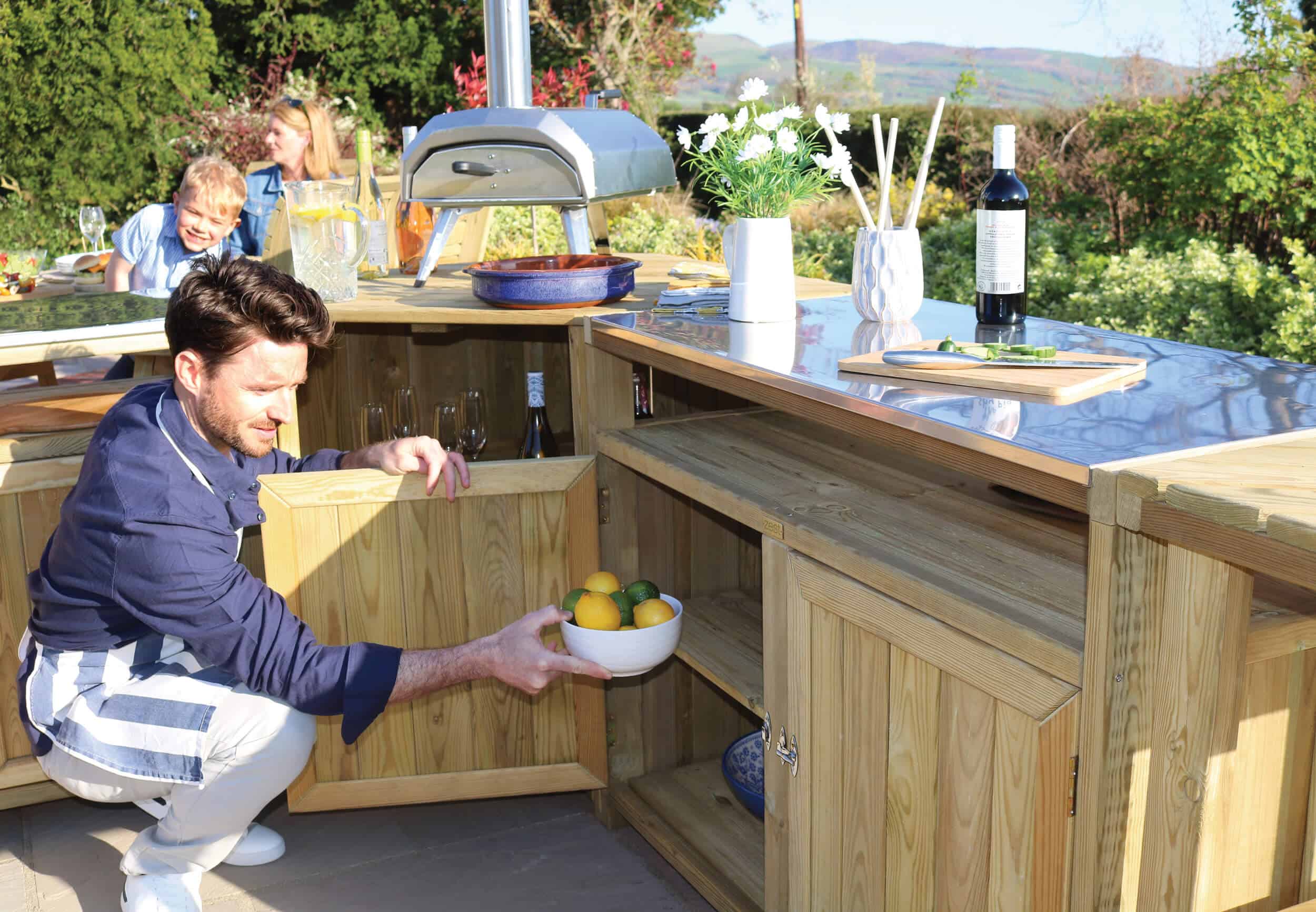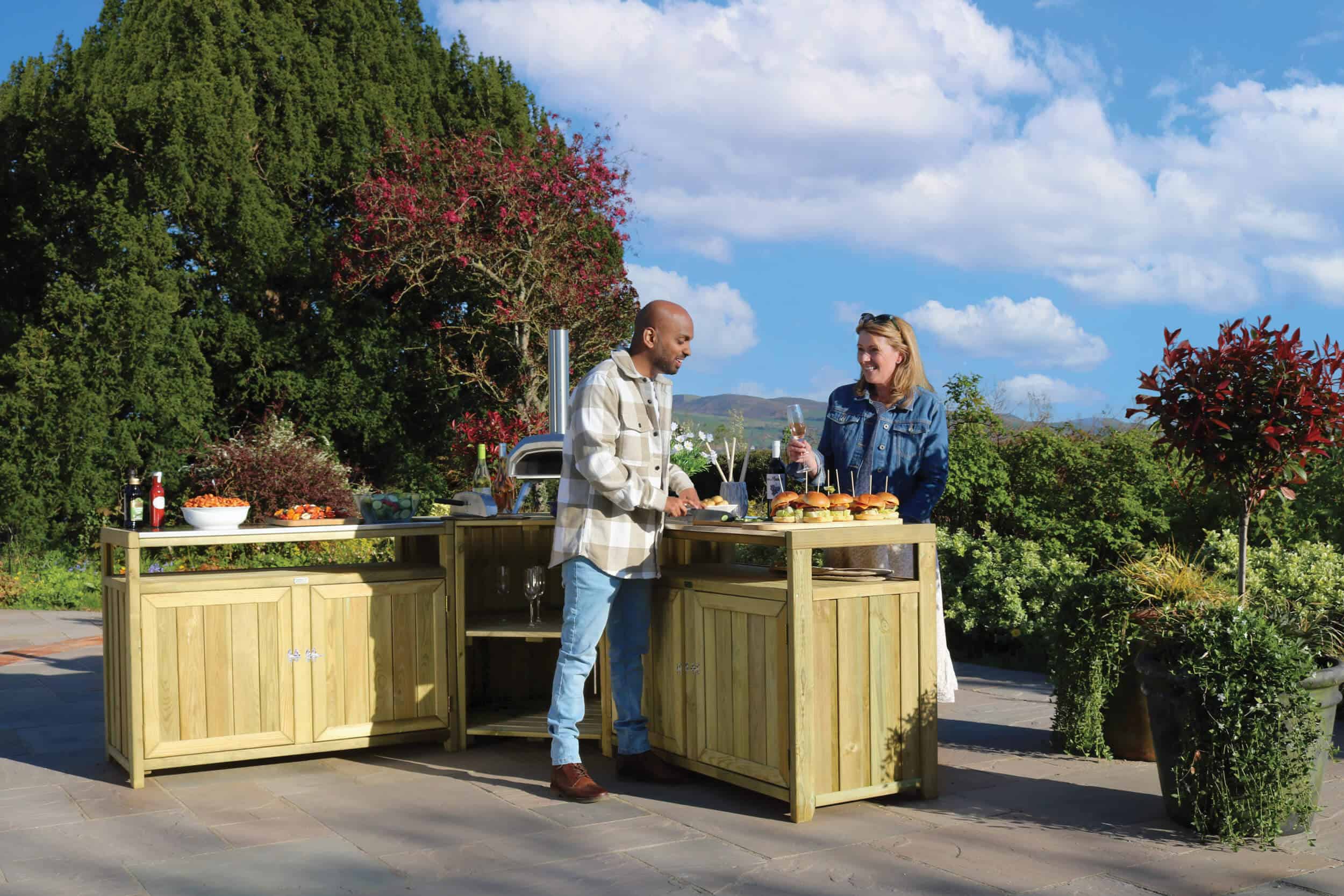 The outdoor kitchen features durable stainless steel countertops that are perfect for food preparation, setting up a pizza oven, or serving guests, all at a standard working height. It offers plenty of storage for your cooking tools and equipment, keeping your space organized. Made from sustainably sourced, slow-grown softwood from responsibly managed forests, this kitchen comes with a 10-year guarantee against rot. It also coordinates with other Zest outdoor entertaining products, such as the Zest Garden Bar, to help you create the perfect, cohesive entertaining area.