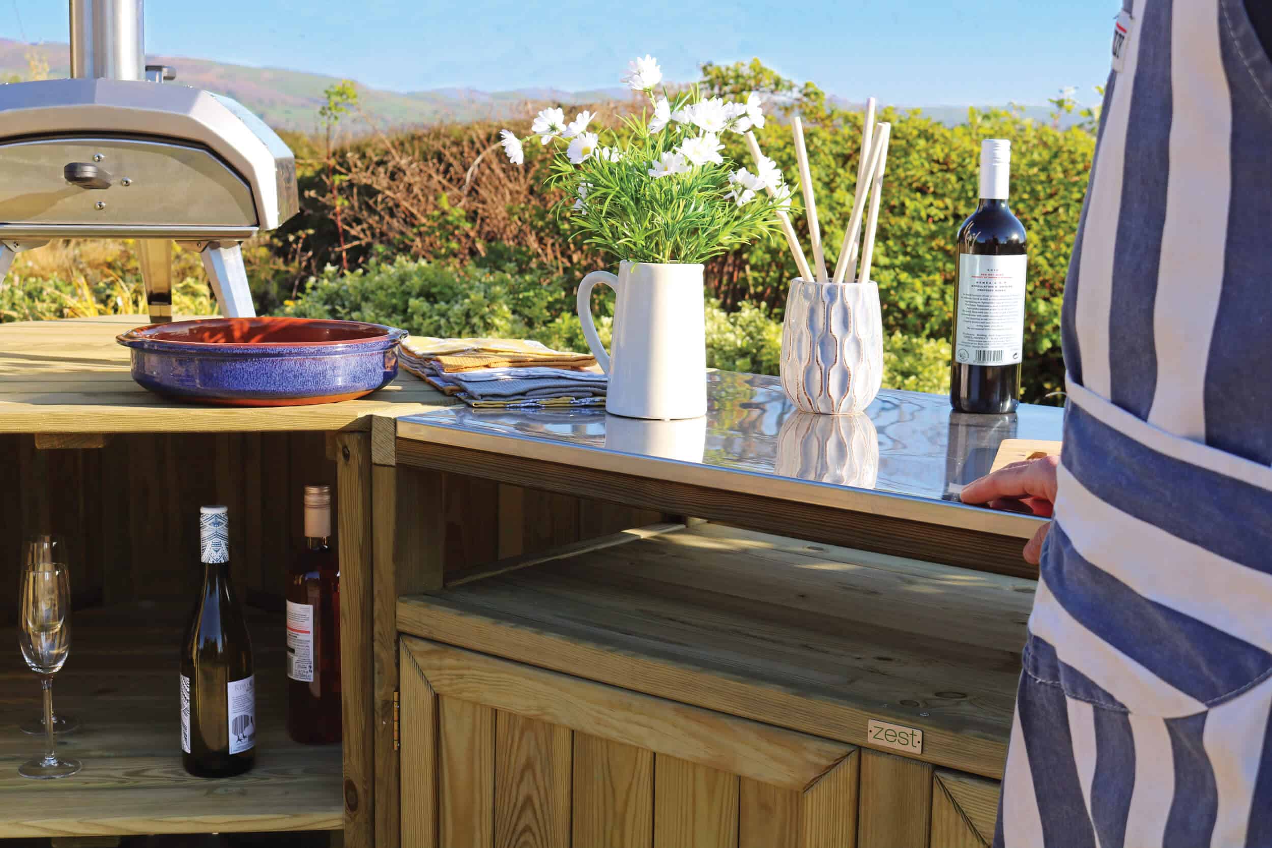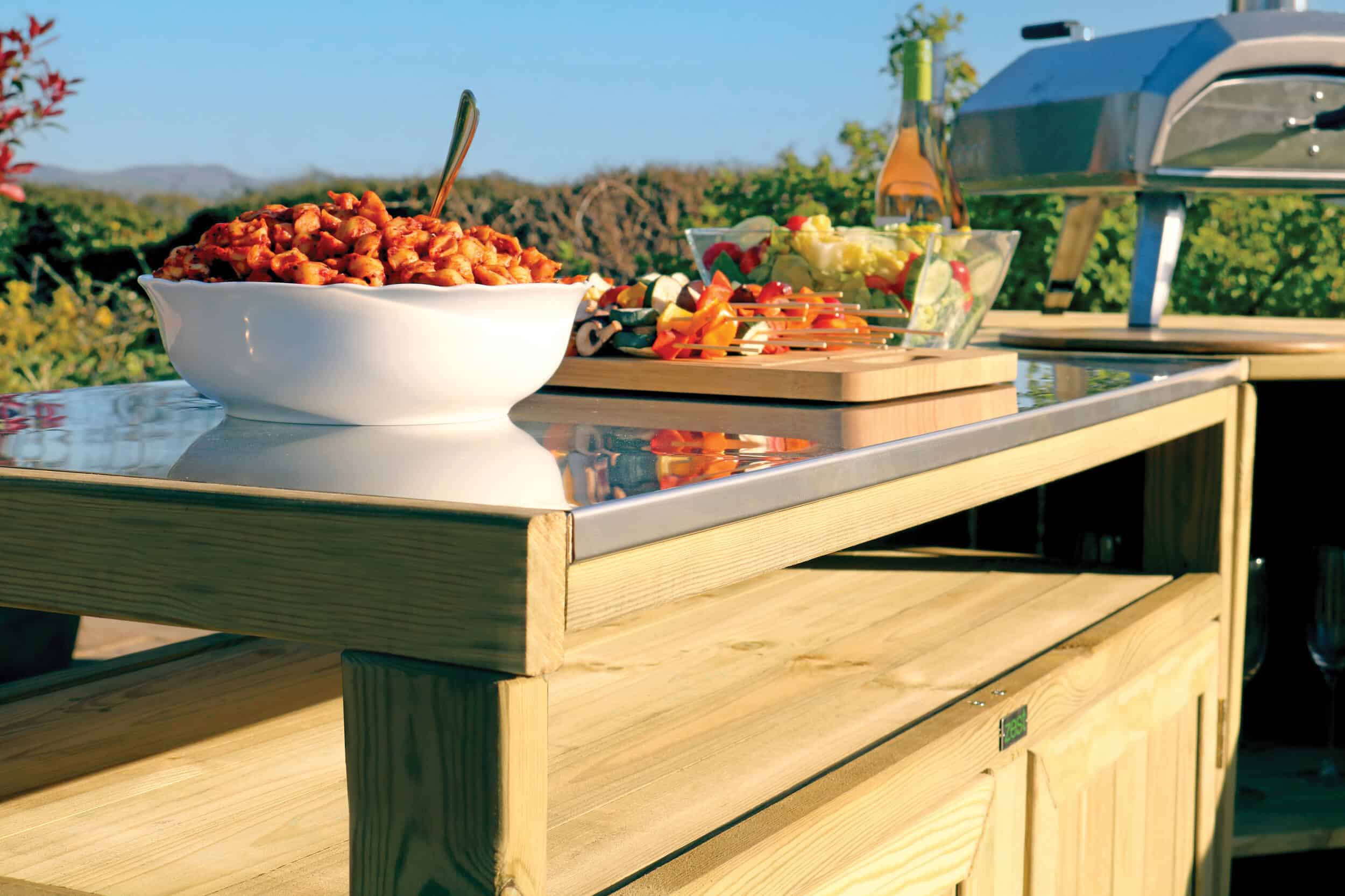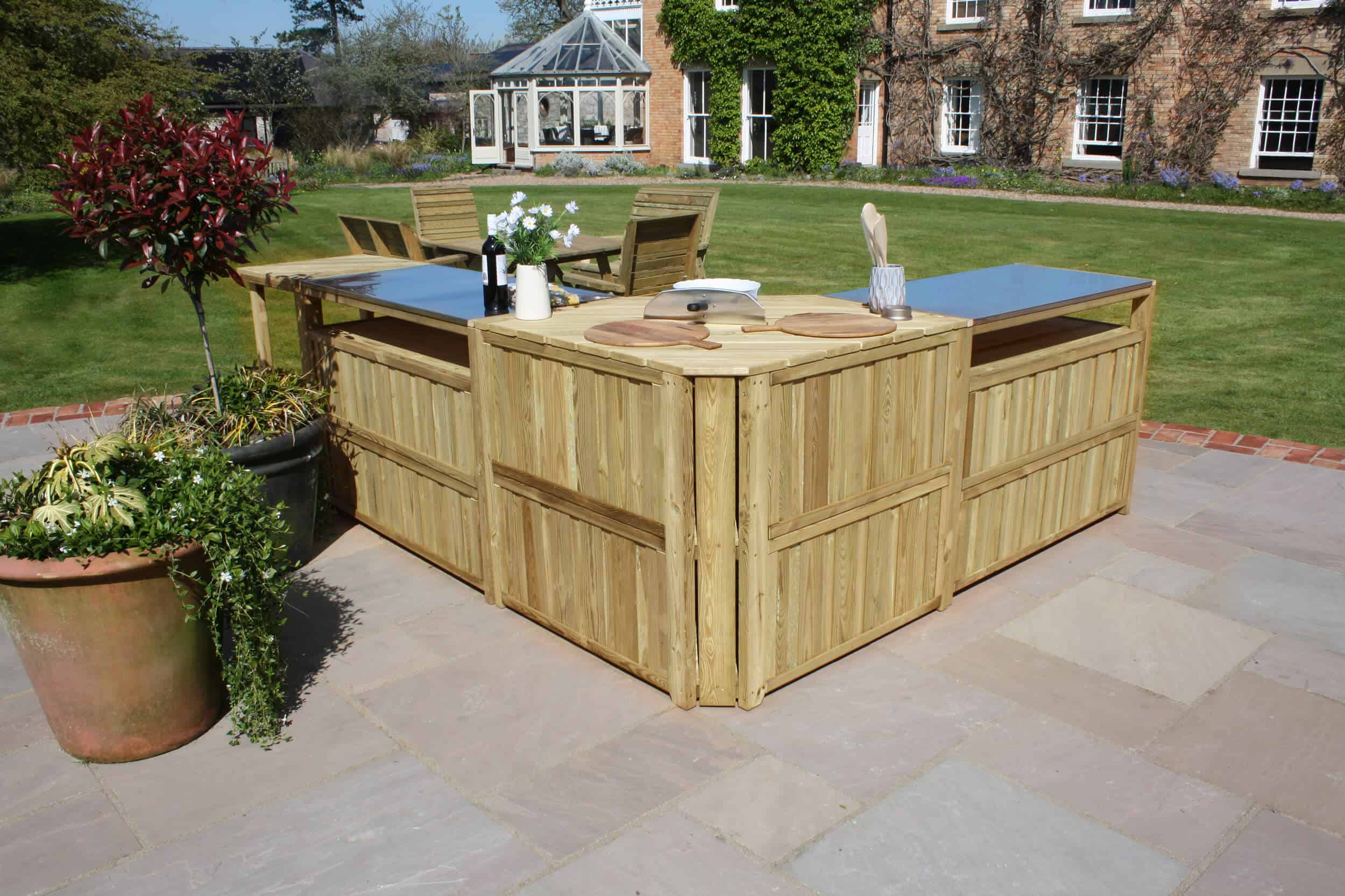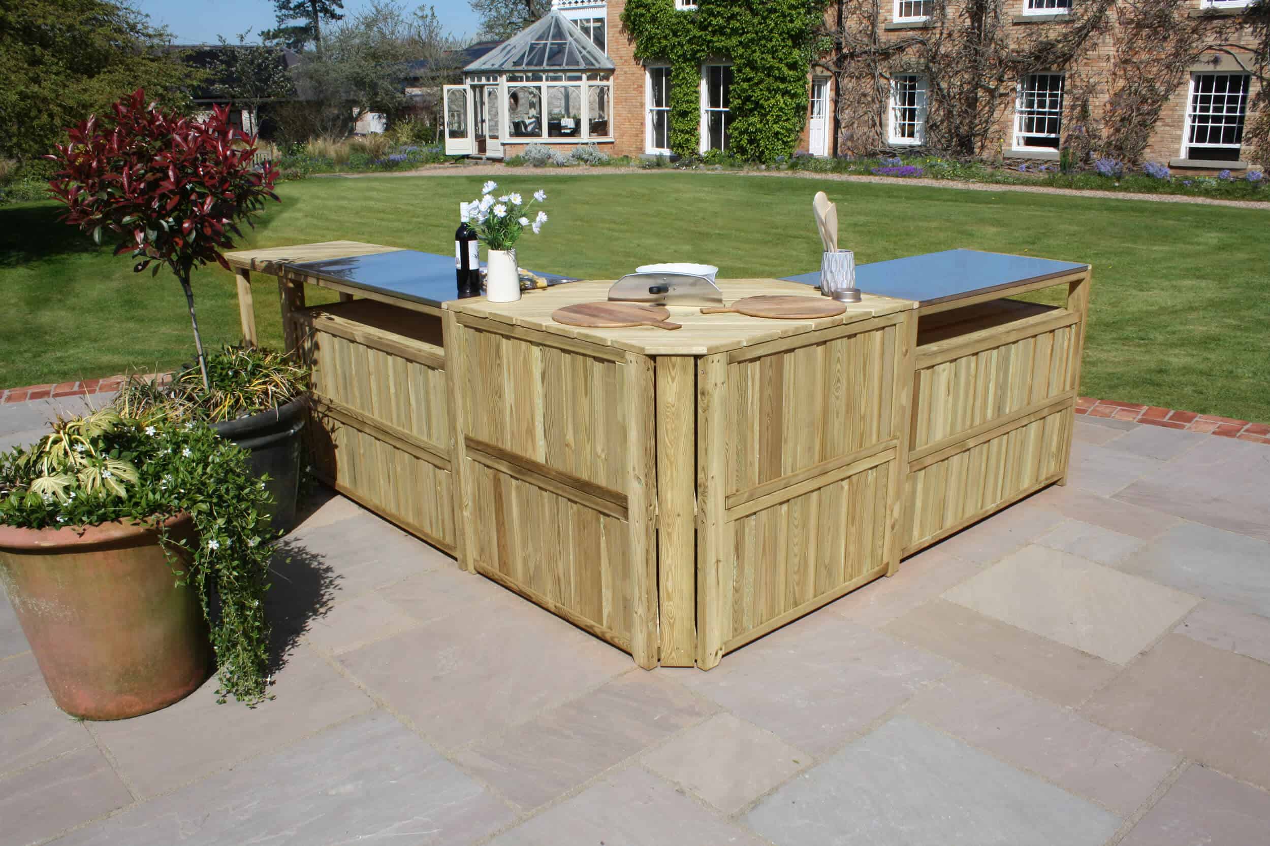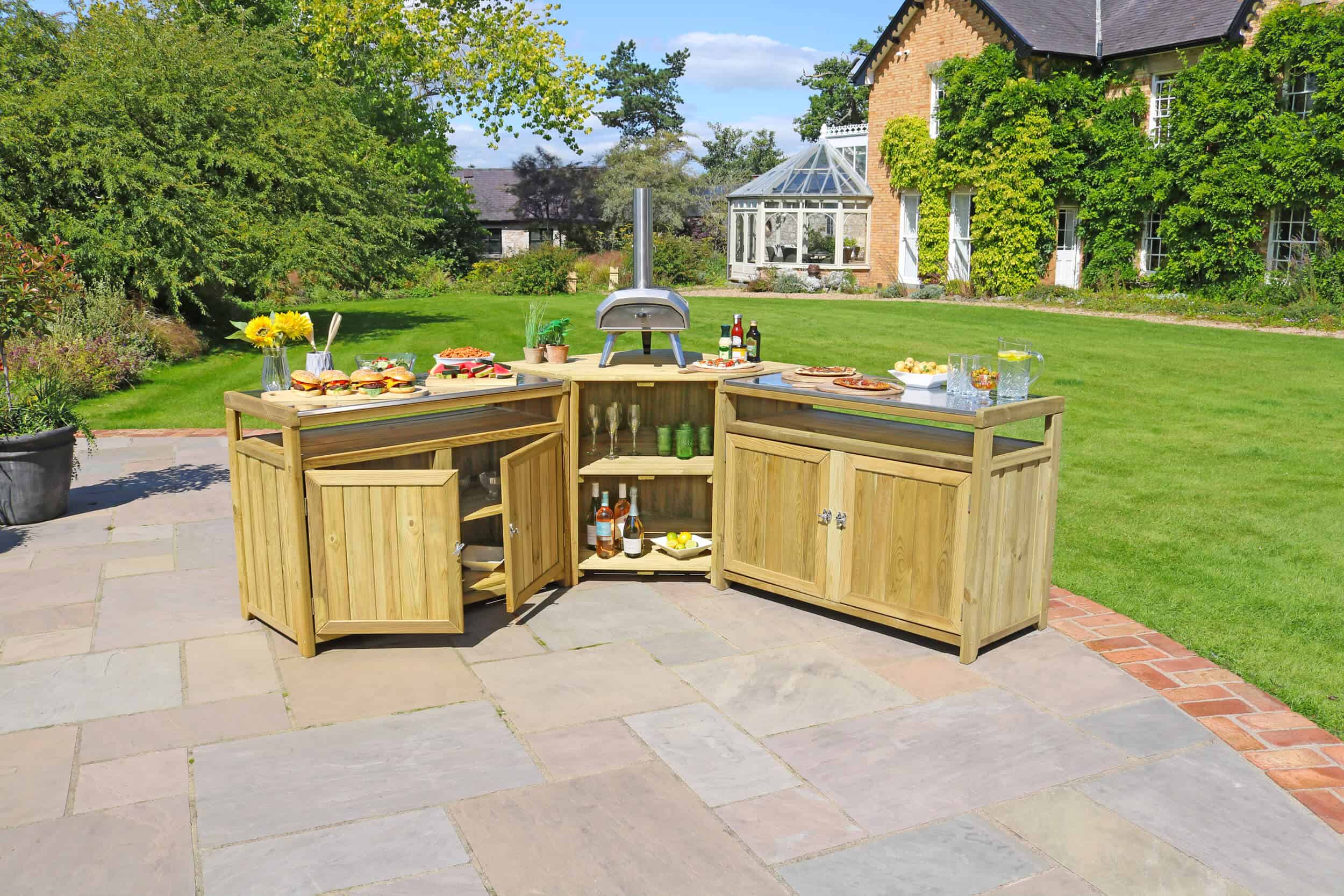 The outdoor kitchen features durable stainless steel countertops that are perfect for food preparation, setting up a pizza oven, or serving guests, all at a standard working height. It offers plenty of storage for your cooking tools and equipment, keeping your space organized. Made from sustainably sourced, slow-grown softwood from responsibly managed forests, this kitchen comes with a 10-year guarantee against rot. It also coordinates with other Zest outdoor entertaining products, such as the Zest Garden Bar, to help you create the perfect, cohesive entertaining area.