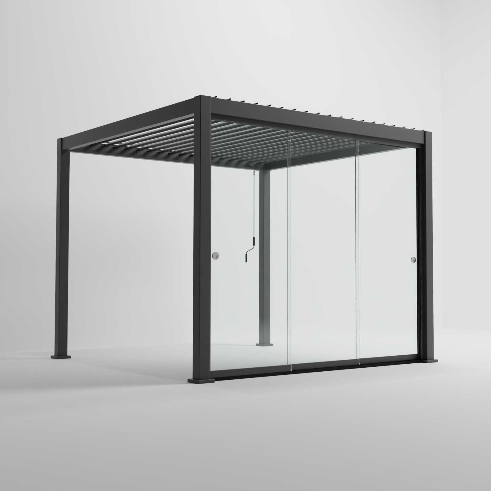 Transform your 3m Titan Pergola into a sophisticated outdoor room with the premium Glass Sliding Doors Pack. This comprehensive door system creates seamless indoor-outdoor living by providing complete weather protection while maintaining clear visibility and elegant aesthetics. The innovative sliding design offers instant transformation from an open pergola to a fully enclosed sanctuary.