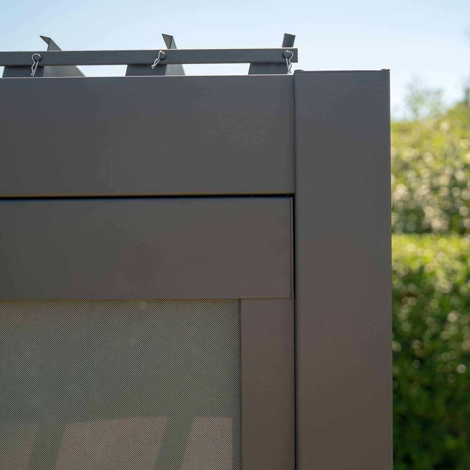 Seamlessly fitting the Titan pergolas, this screen features a sturdy aluminium frame that matches your pergola’s finish. Installation is simple, with all necessary fixings included, allowing you to secure the framework to the pergola’s legs and underside. When not in use, the screen smoothly retracts into its roller for an open, airy space.